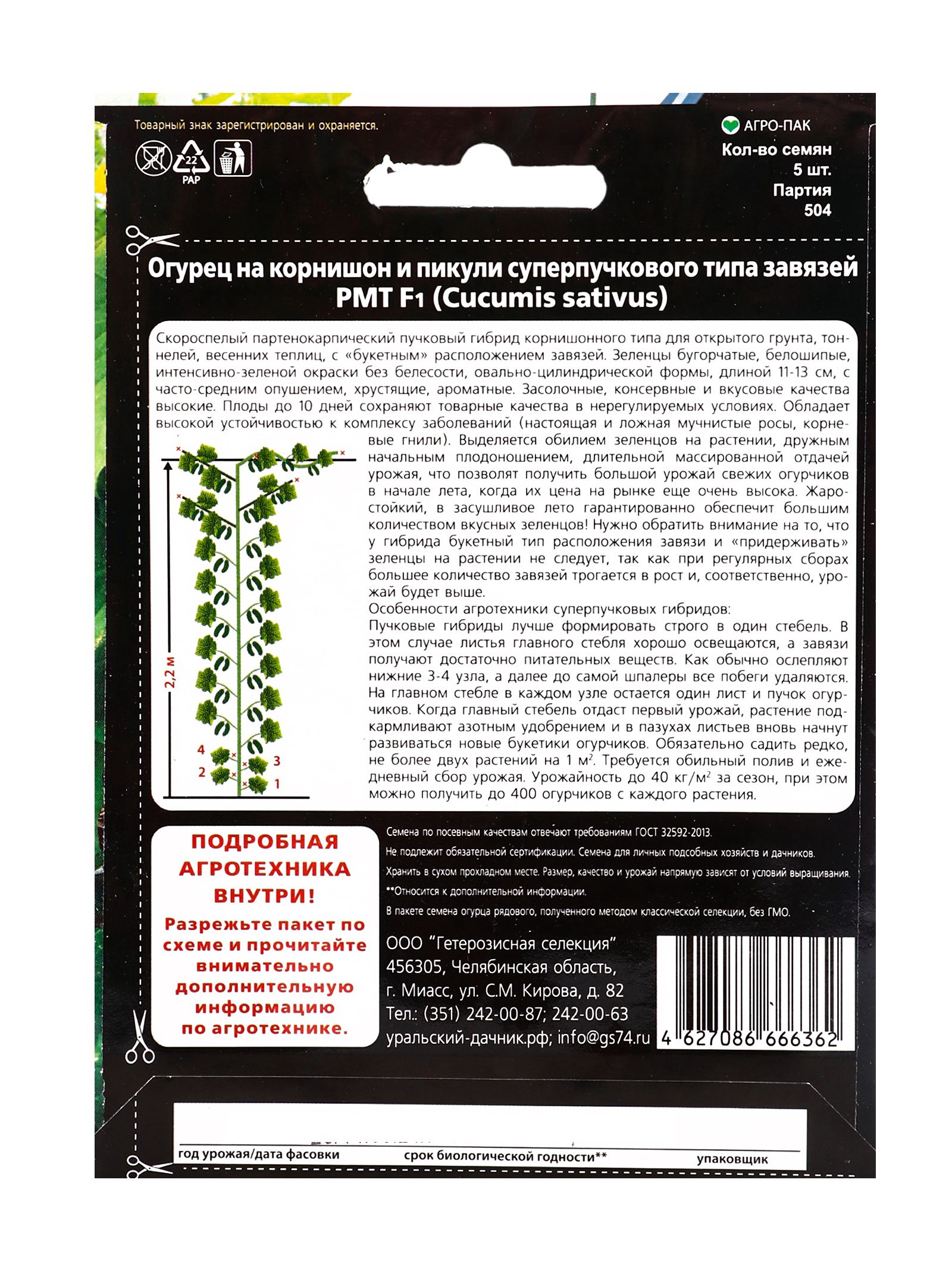 Семена огурец "РМТ F1", супербукетный тип, партенокарпический, 5 шт., Уральский Дачник, Россия