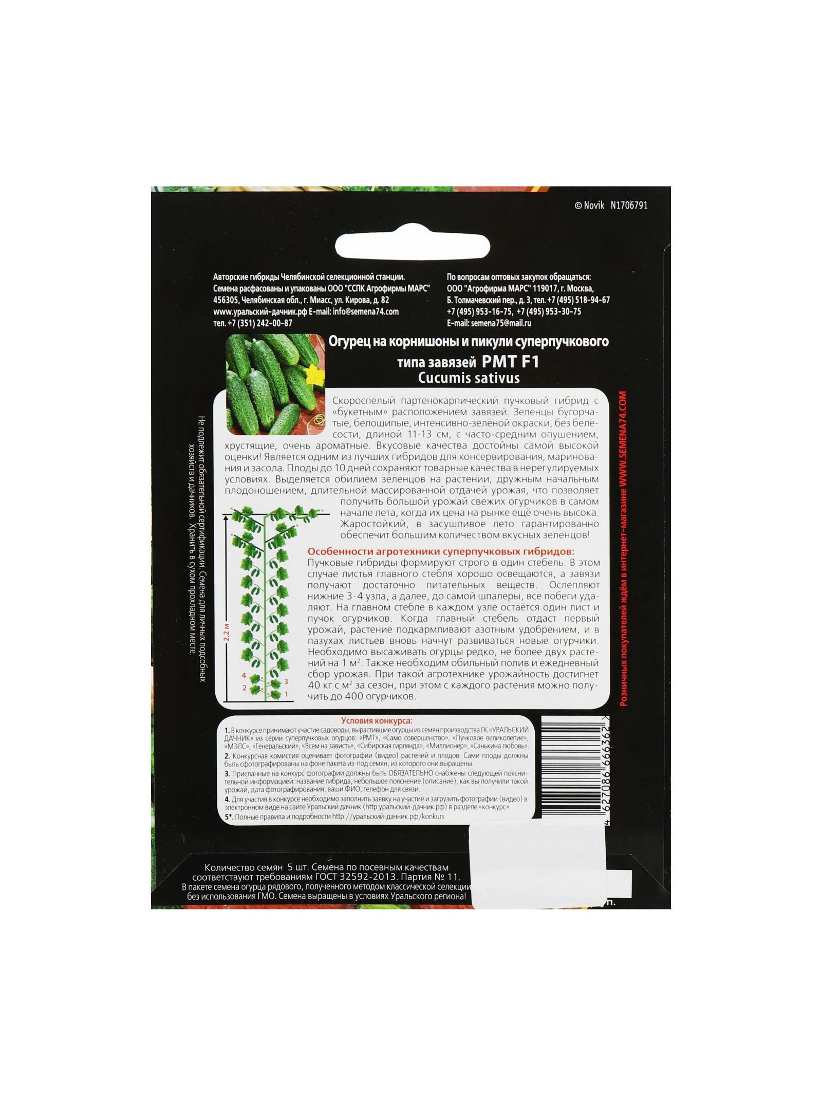 Семена огурец "РМТ F1", супербукетный тип, партенокарпический, 5 шт., Уральский Дачник, Россия