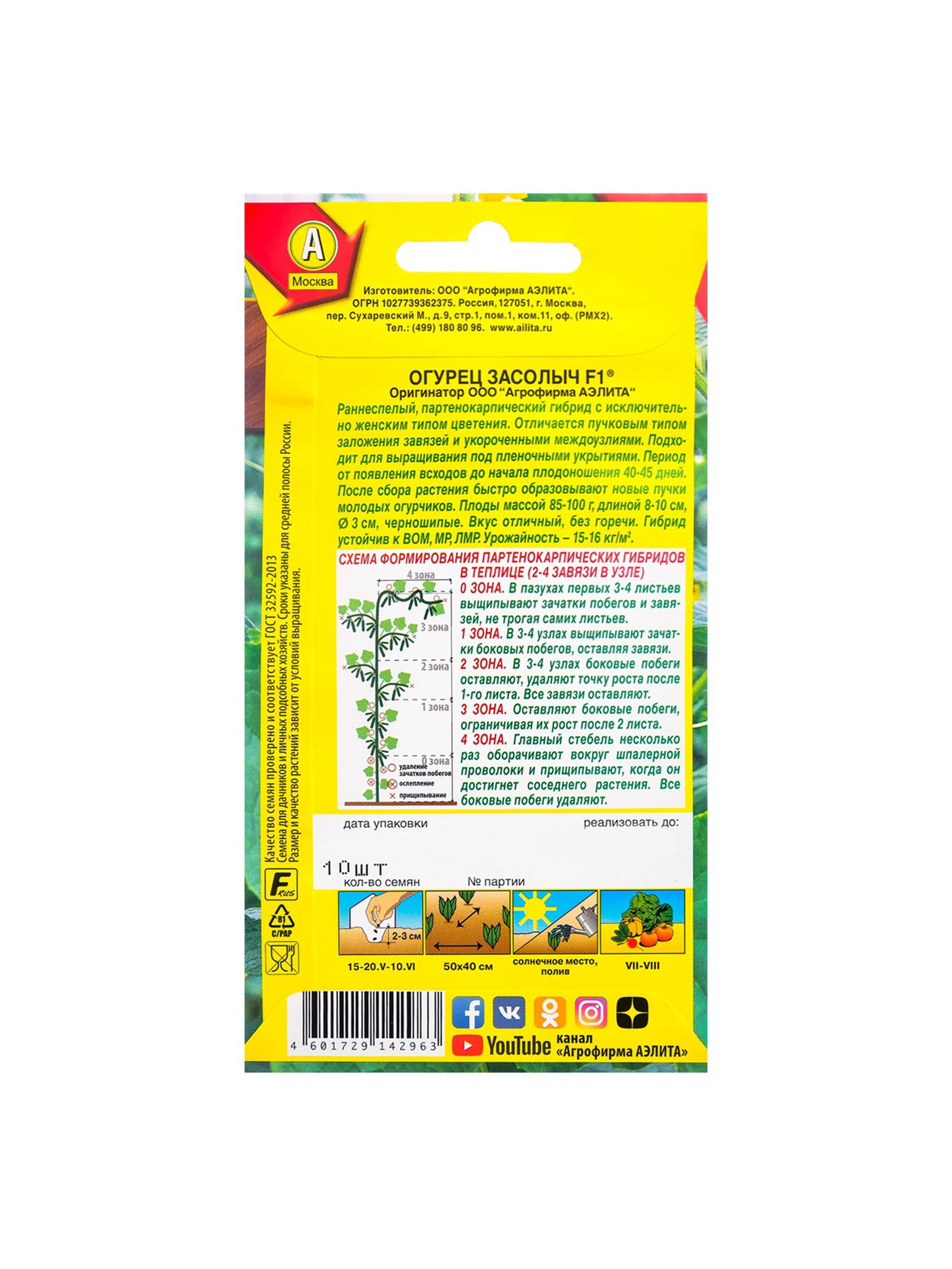 Семена огурца "Засолыч", F1, 10 шт., Агрофирма АЭЛИТА, Польша