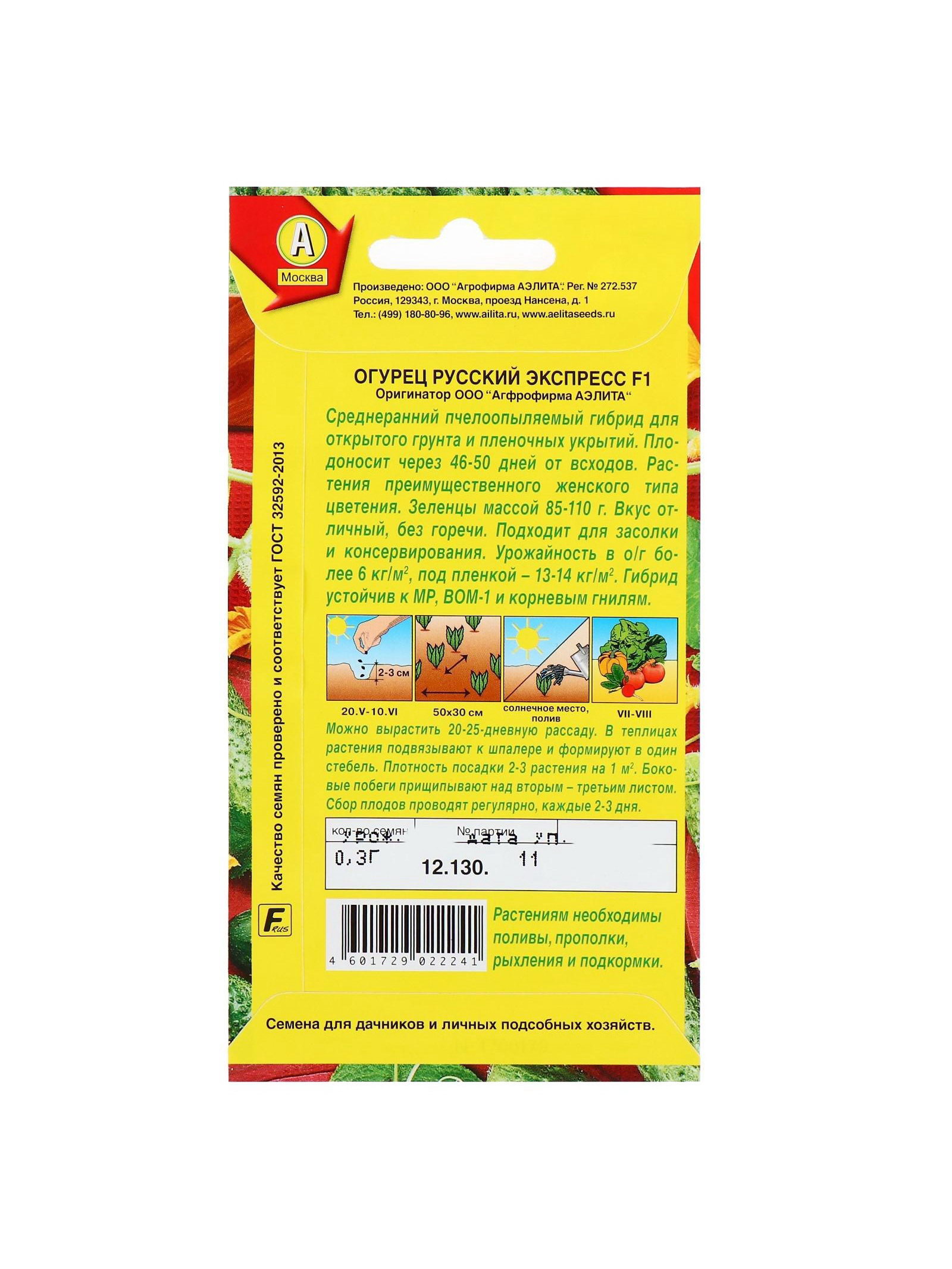 Семена Огурец "Русский экспресс" F1, среднеранний, пчелоопыляемый, 10 шт., Агрофирма АЭЛИТА, Нидерланды