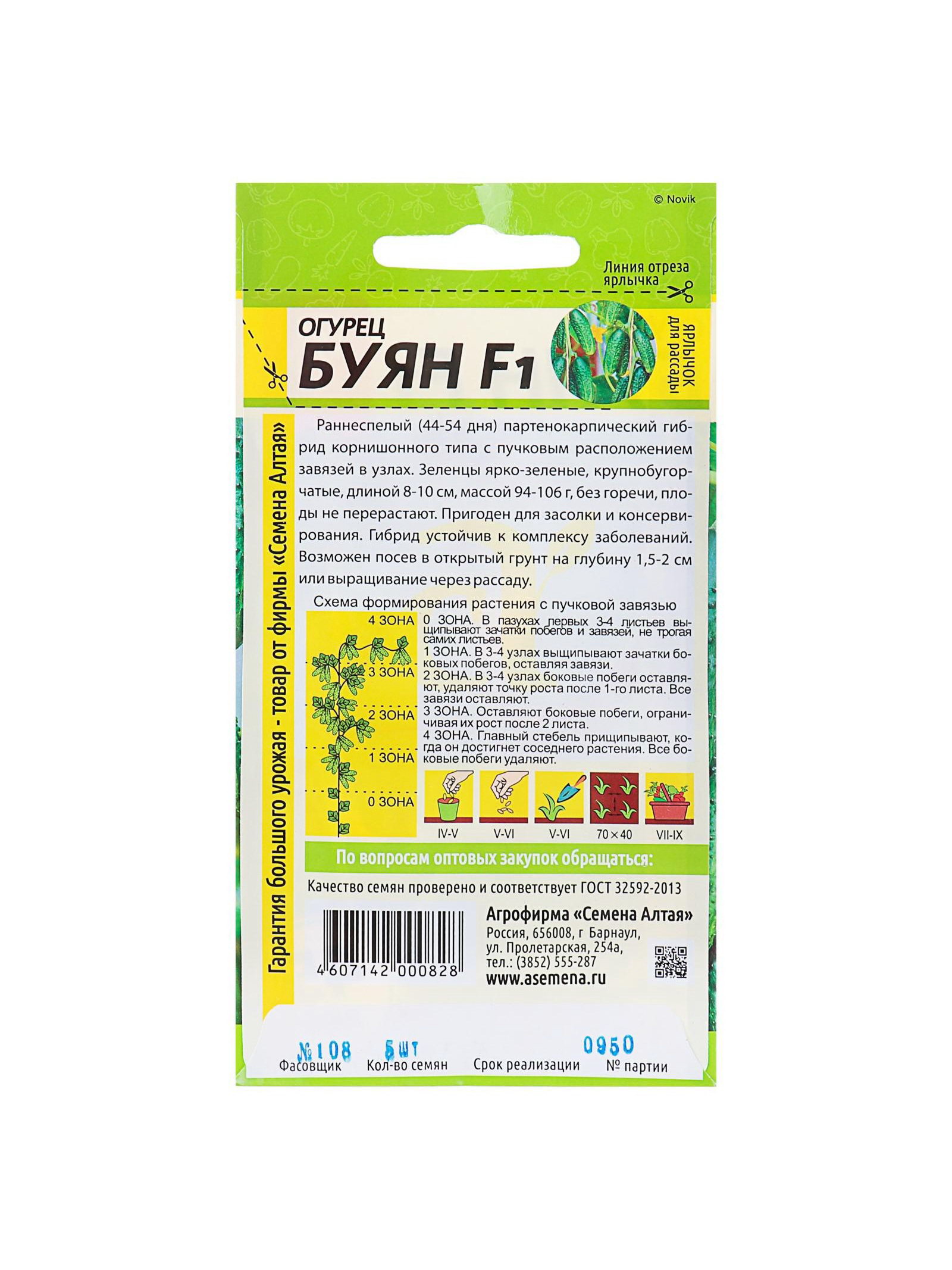 Семена огурца "Буян", 5 шт., Семена Алтая, Россия