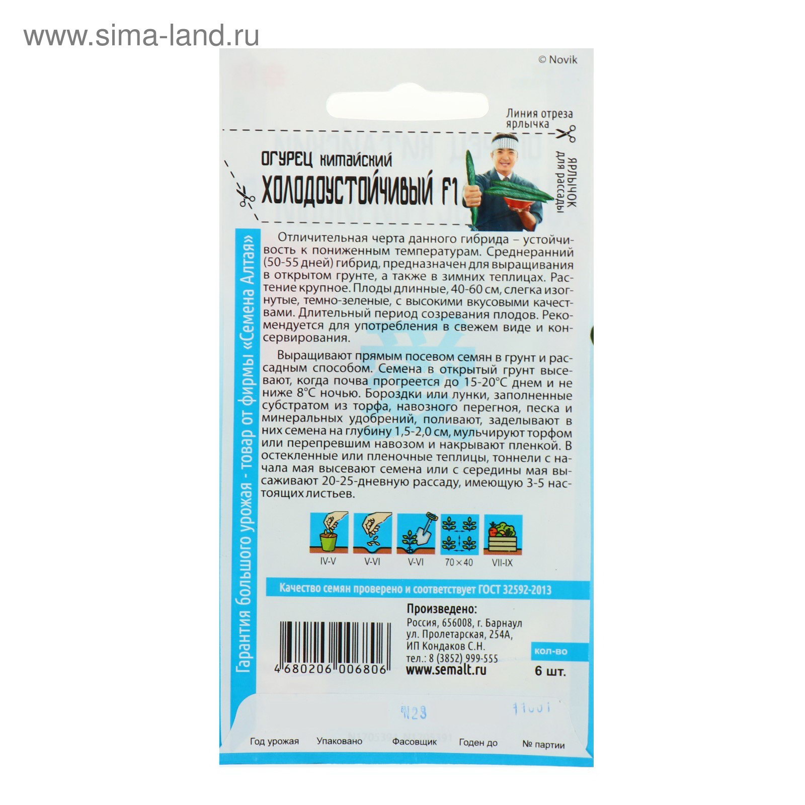 Семена Огурец Китайский "Холодоустойчивый F1", среднеранний, партенокарпический, цп, 6 шт., Семена Алтая, Россия