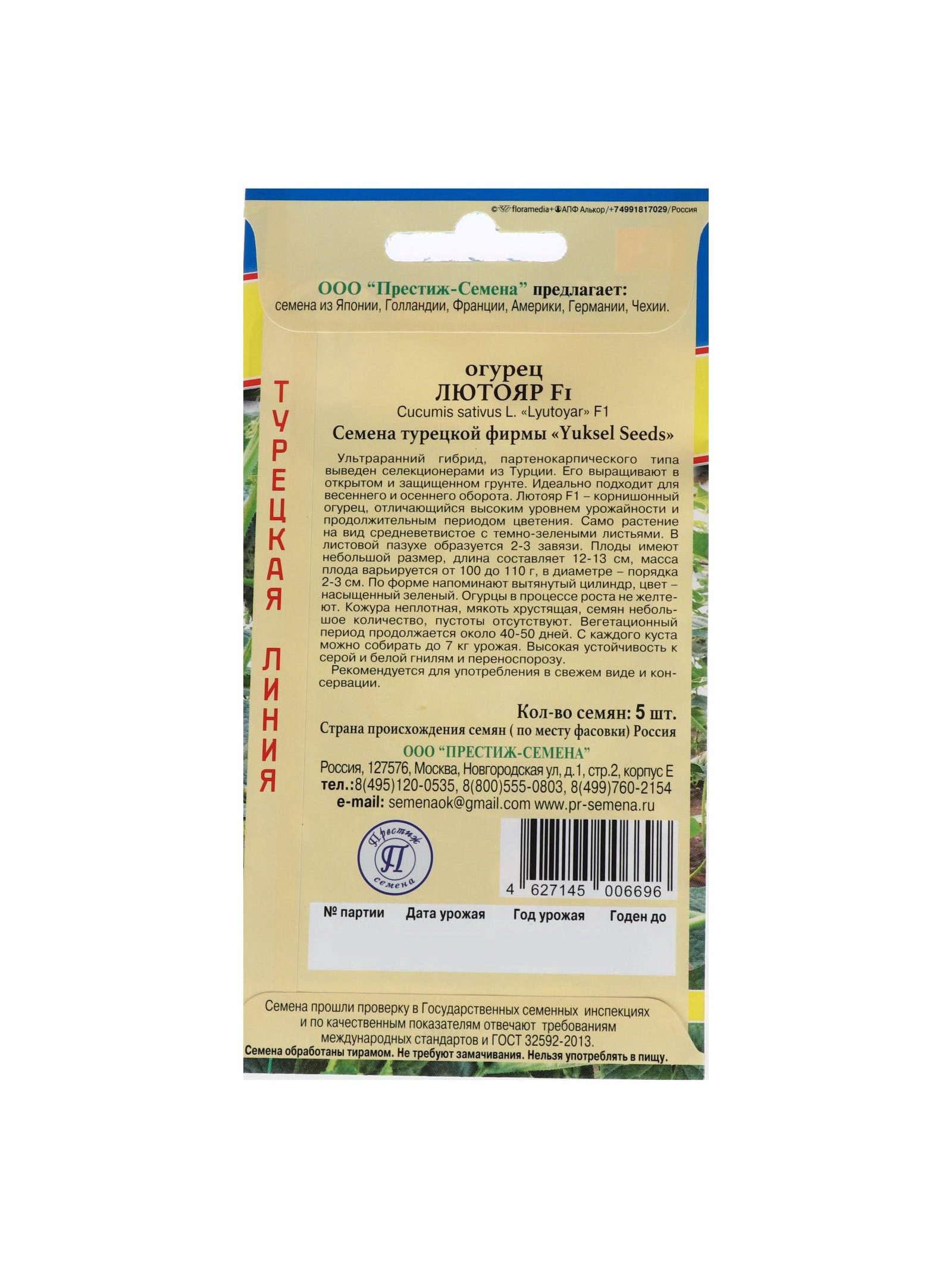 Семена Огурец "Лютояр" F1, 5 шт, Престиж семена, Россия