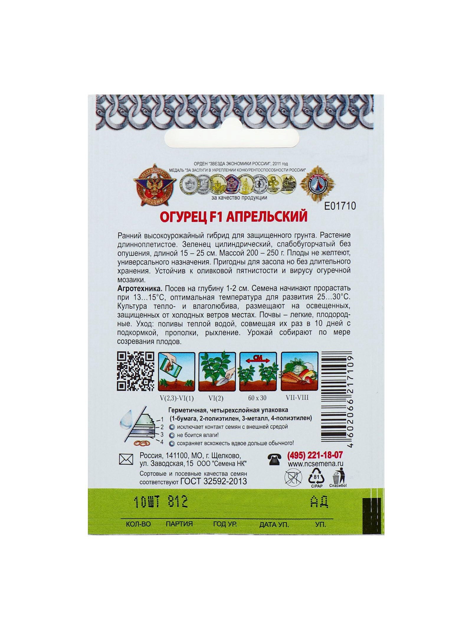Семена огурца "Апрельский", серия "Кольчуга", F1, 10 шт., Русский огород, Россия