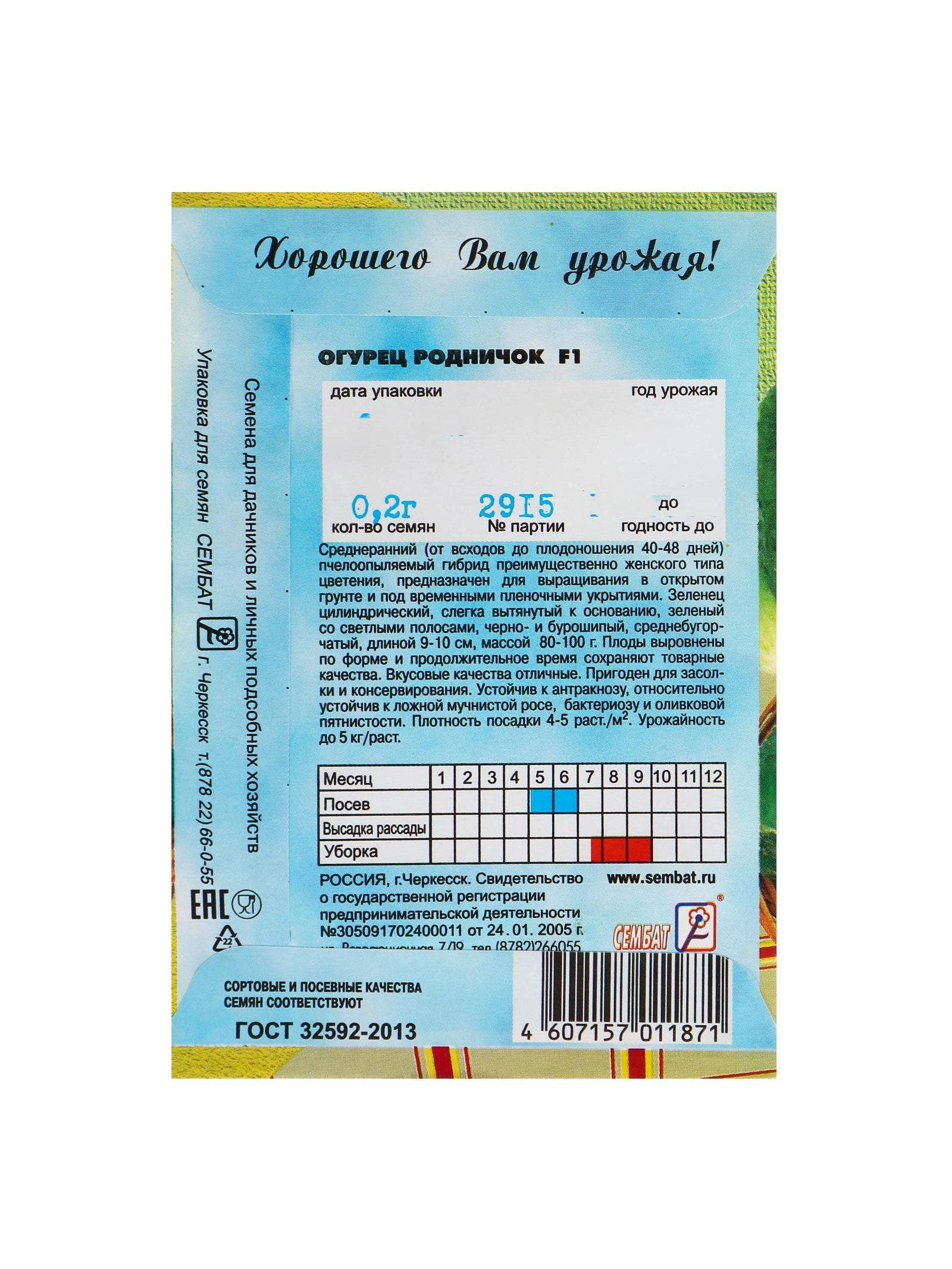 Семена Огурец "Родничок" F1, 0.2 г, Сембат, Россия