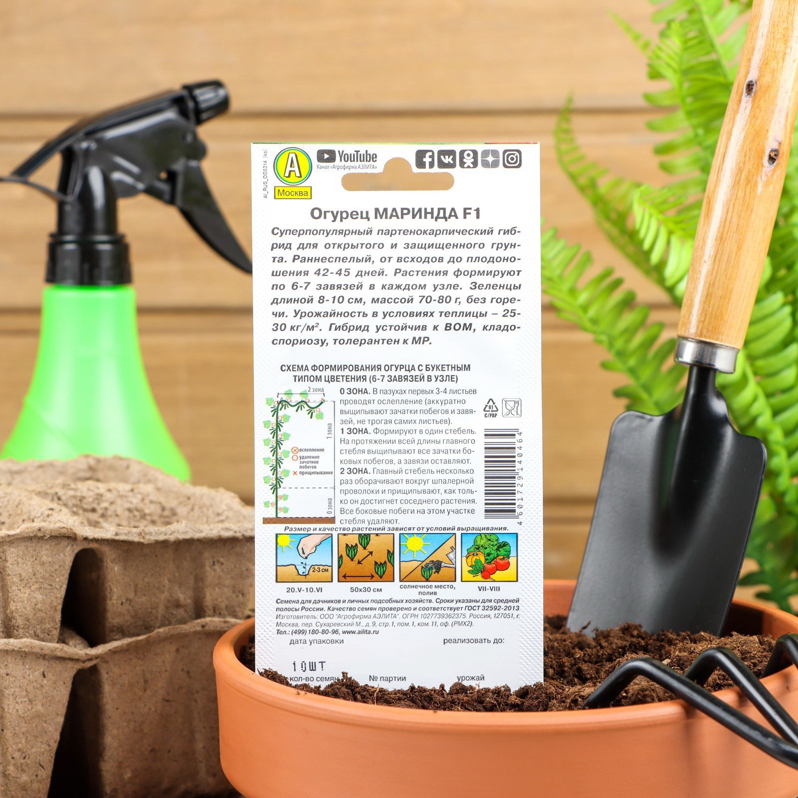Сроки созревания: Ранний, Ранний ( до 48 дней) Размер упаковки: 8 x 15 x 0.1 см. Ампельные: Да Вьющиеся (лианы): Да Бугорчатые: Да Гладкие: Нет Размер: Корнишоны (до 12 см) см Размер: Корнишоны (до 12 см) см tnved: 1209918000 Упаковка: Цветная Сорт или гибрид: Гибрид F1 Особенности выращивания: Универсальный Вегетационный период, дни: 46 Агрономический срок годности, лет: 7 Вид: Партенокарпические Сорт: F1 "Маринда" это популярный раннеспелый партенокарпический сорт для открытого и защищённого грунта. Плодоношение начинается на 45–50-й день от всходов. "Маринда" хрустящий крупнобугорчатый гибрид длиной 8–10 см и массой 90–110 гр Отлично подходит для употребления в свежем виде, маринования, консервирования и засолки. Урожайность в закрытом грунте до 30 кг/?2. Обладает высокой устойчивостью к настоящей и ложной мучнистой росе, вирусу огуречной мозаики и оливковой пятнистости. Посев Семена высаживают в грунт, когда минует угроза заморозков. Глубина заделки 2–3 см Всходы появляются через 20–30 дней. Огурцы предпочитают среднесуглинистые, воздухопроницаемые почвы. Уход Для продолжительного и обильного плодоношения растениям необходим своевременный полив, регулярная прополка, рыхление и подкормка минеральными удобрениями. | ||