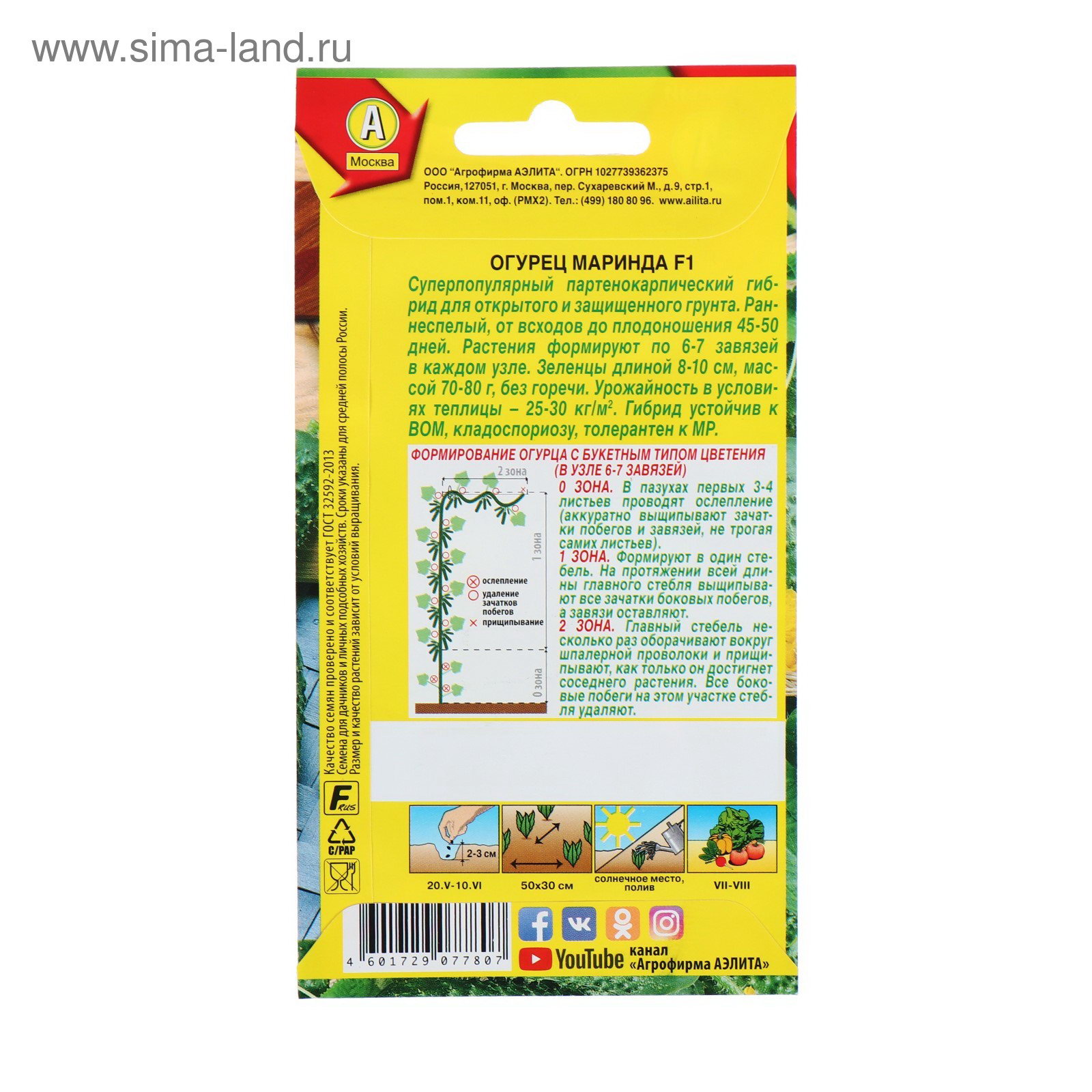 Семена Огурец "Маринда" F1, раннеспелый, партенокарпический, 0.25 г, Агрофирма АЭЛИТА, Россия