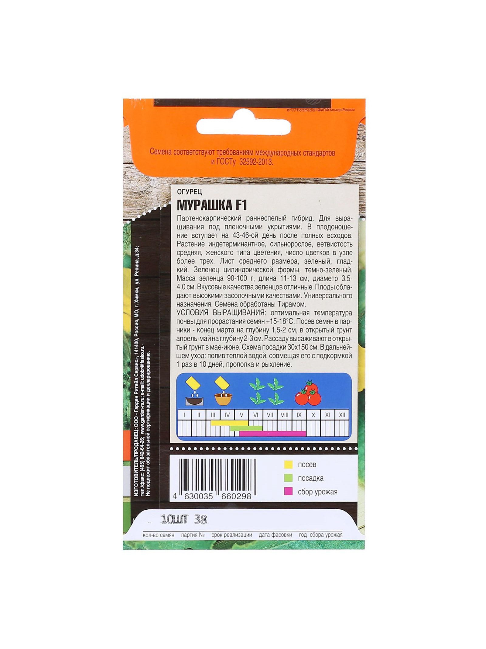 Семена Огурец "Мурашка" F1, раннеспелый, партенокарпический, 10 шт, Тимирязевский питомник, Россия