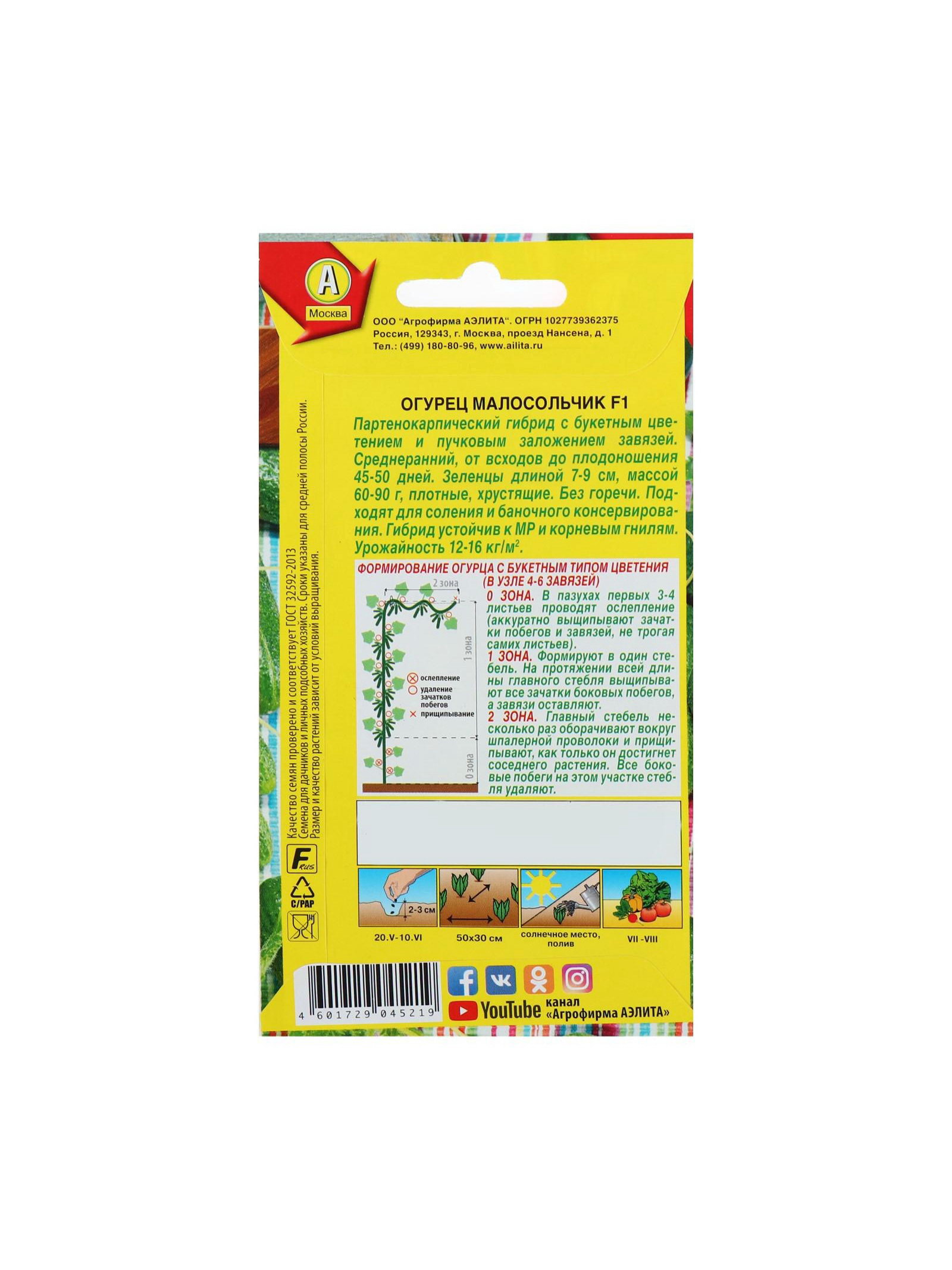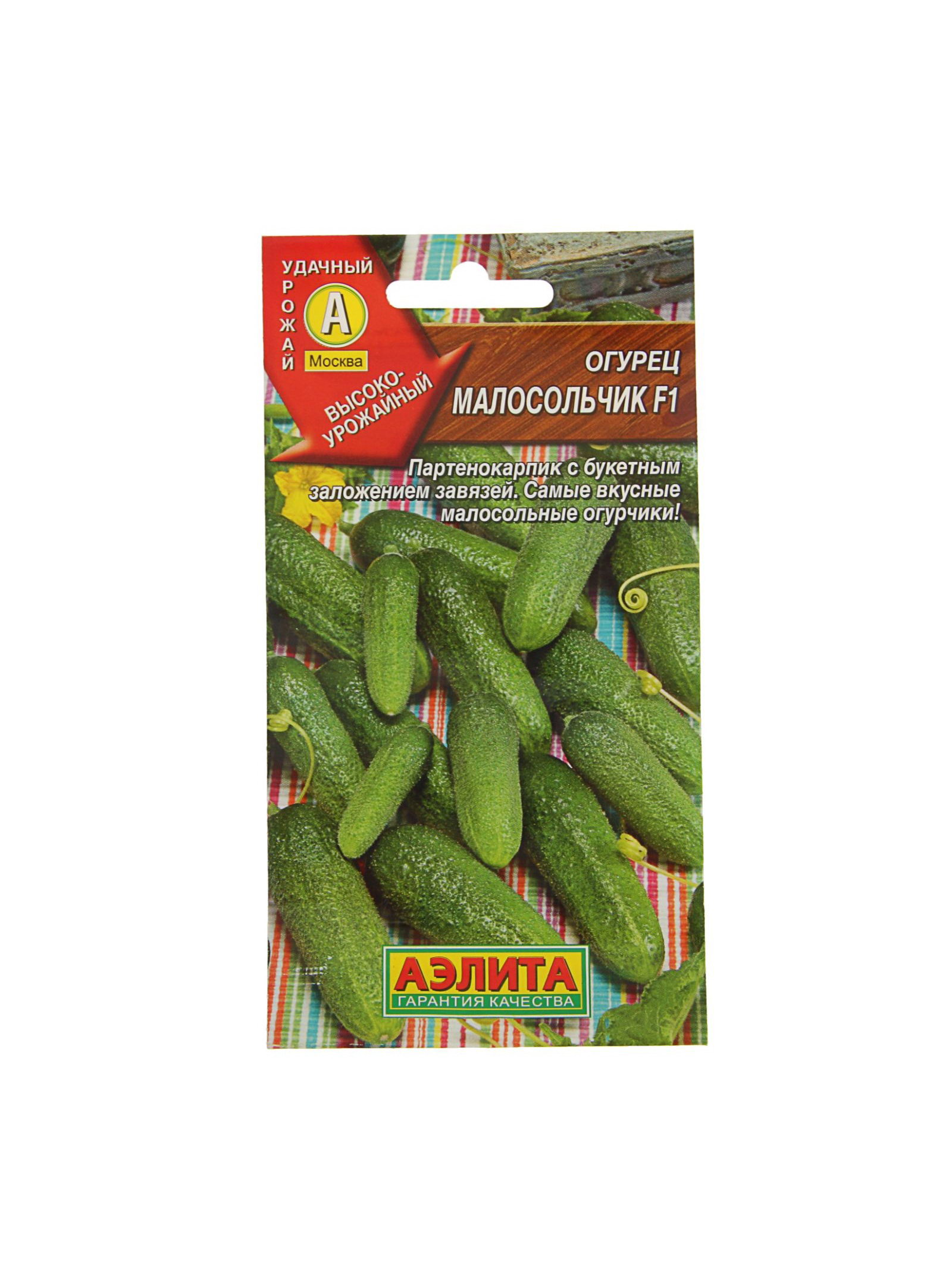 Семена Огурец "Малосольчик F1", раннеспелый, партенокарпический, 10 шт, Агрофирма АЭЛИТА, Россия
