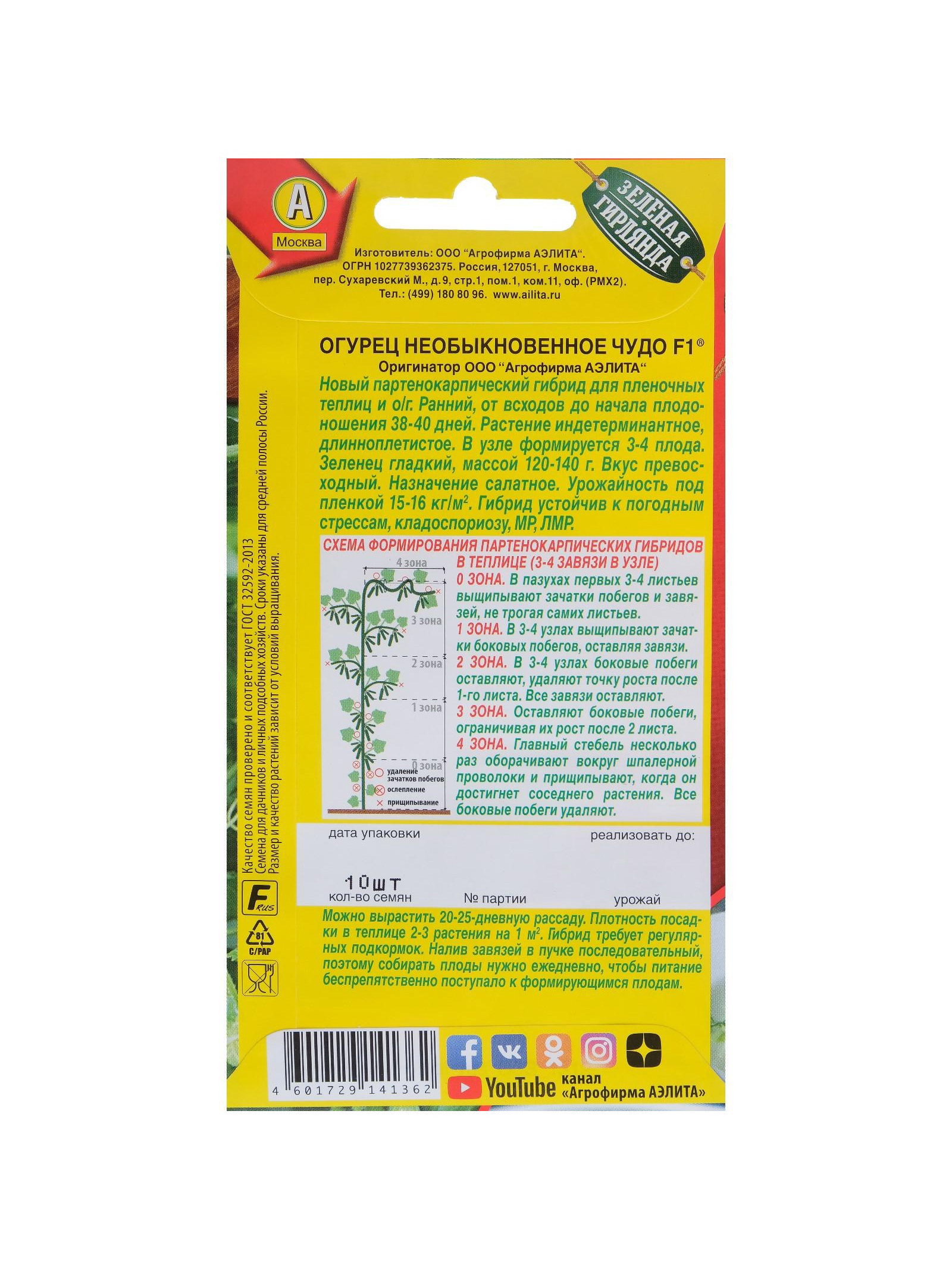 Семена Огурец "Необыкновенное чудо" F1, раннеспелый, партенокарпический, 0.25 г, Агрофирма АЭЛИТА, Польша