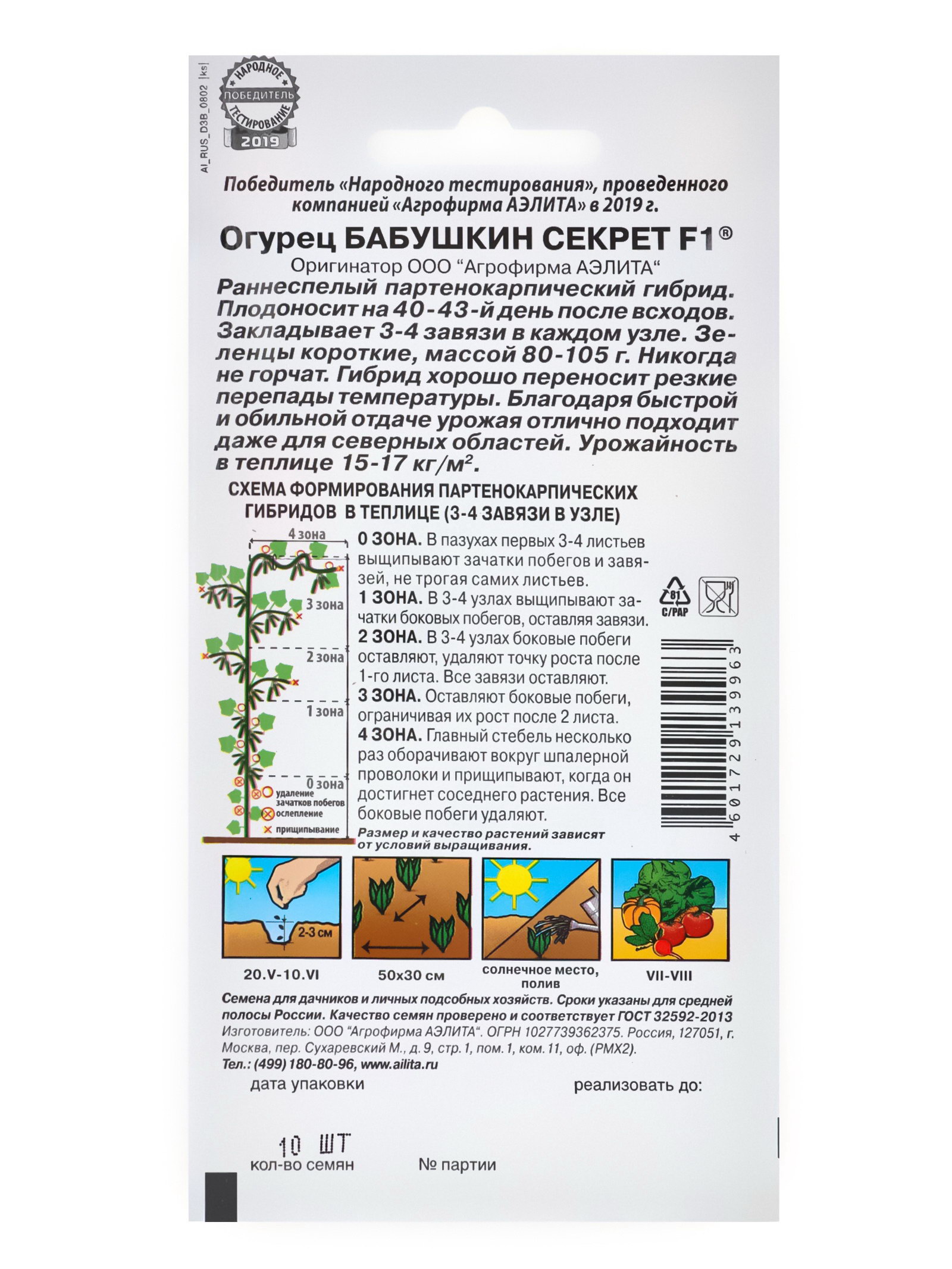 Семена огурца "Бабушкин секрет", F1, 10 шт., Агрофирма АЭЛИТА, Италия