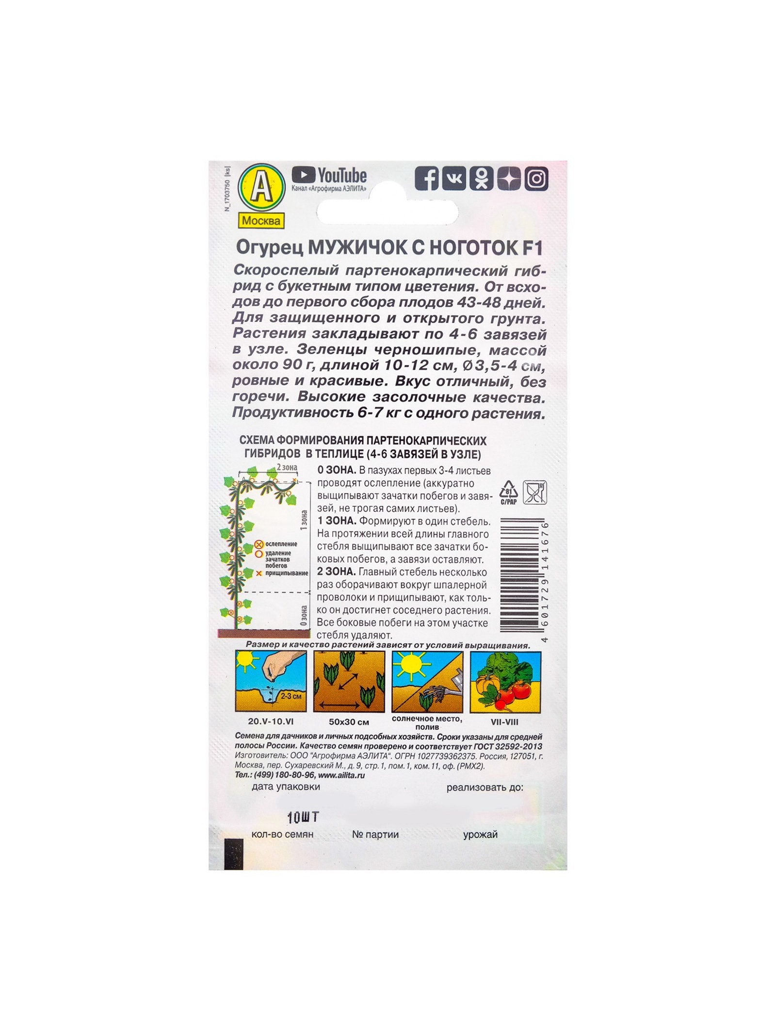 Семена Огурец "Мужичок с ноготок" F1, среднеранний, партенокарпический, 10 шт, Агрофирма АЭЛИТА, Индия