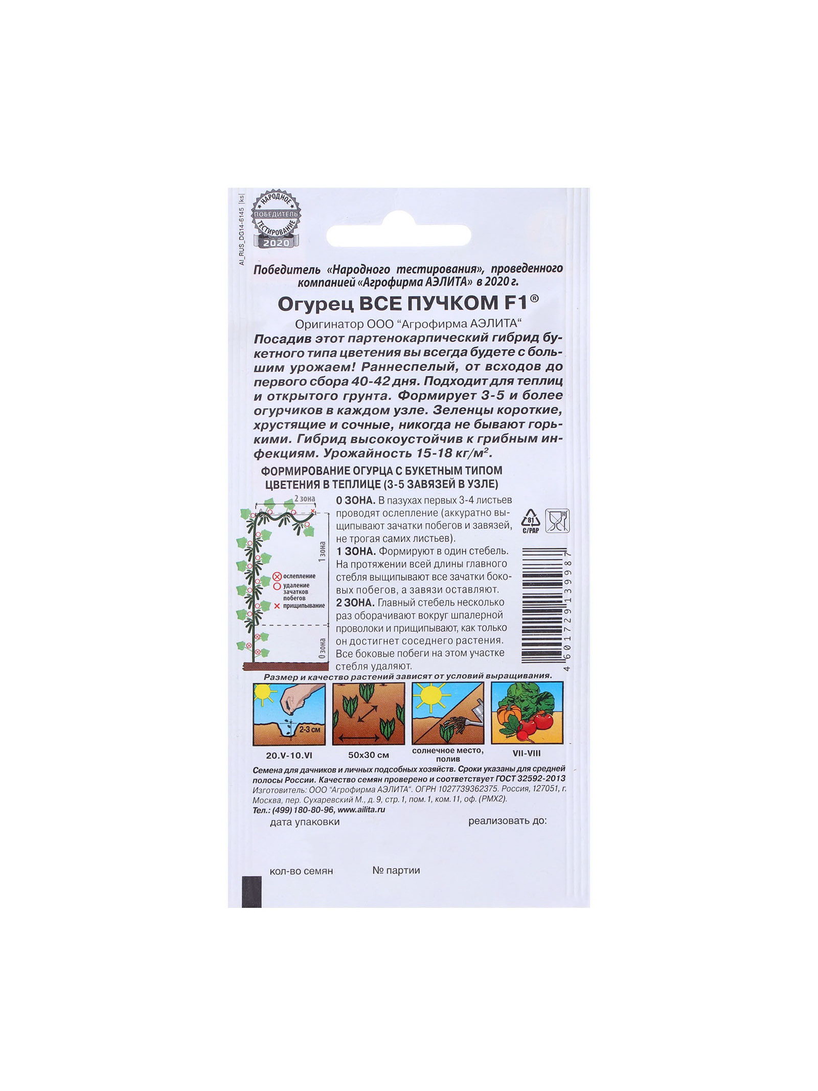 Семена огурца "Все пучком", F1, 10 шт., Агрофирма АЭЛИТА, Россия