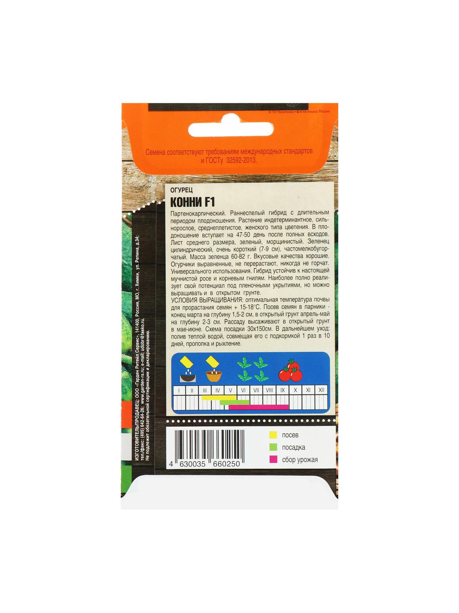 Семена Огурец "Конни" F1, скороспелый, партенокарпический, 0.3 г, Тимирязевский питомник, Россия