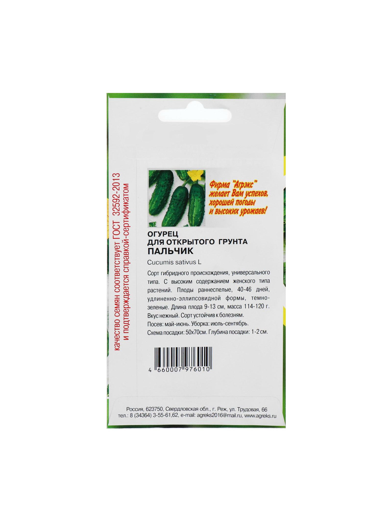 Семена Огурец "Пальчик", скороспелый, партенокарпический, 10 шт, 8x13x0.1 см., АГРЭКС, Россия