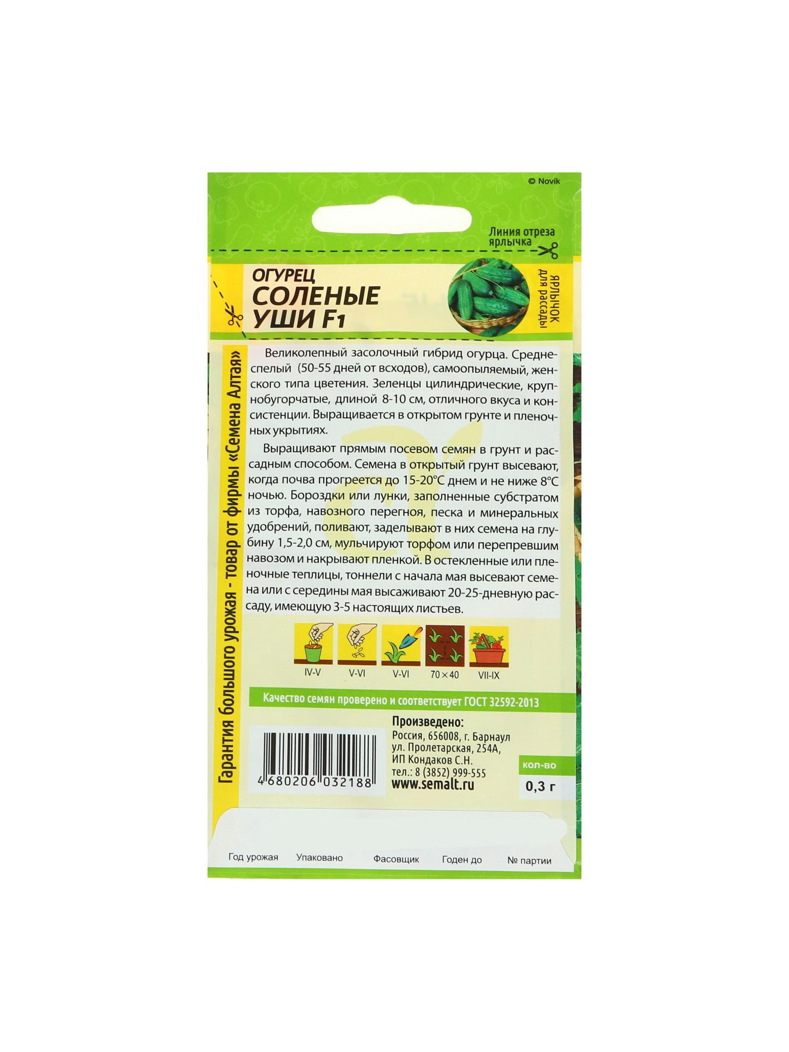 Семена Огурец "Соленые уши" F1, среднеспелый, партенокарпический, цп, 0.3 г, Семена Алтая, Россия