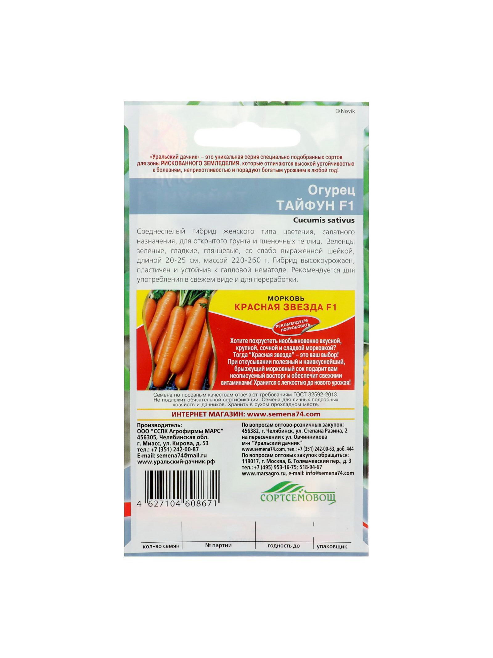 Семена Огурец "Тайфун" F1, раннеспелый, партенокарпический, 5 шт, Уральский Дачник, Россия