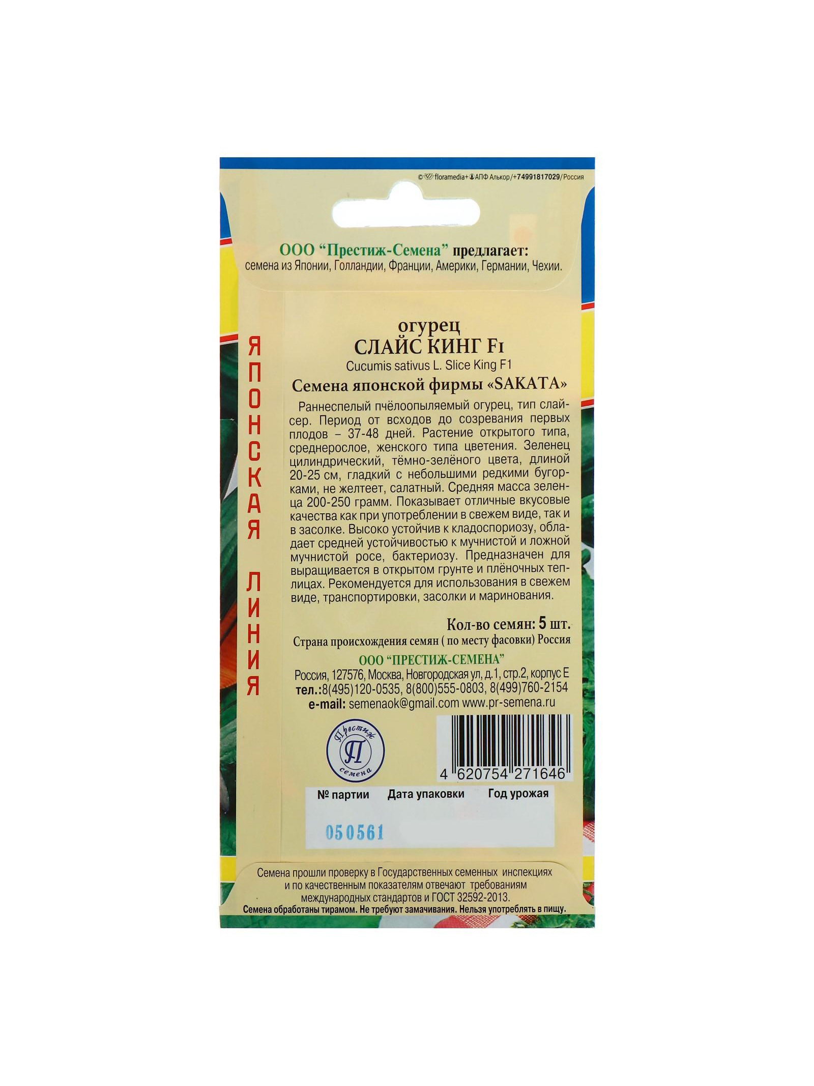 Семена Огурец Слайс Кинг F1, раннеспелый, партенокарпический, 5 шт, Престиж семена, Россия