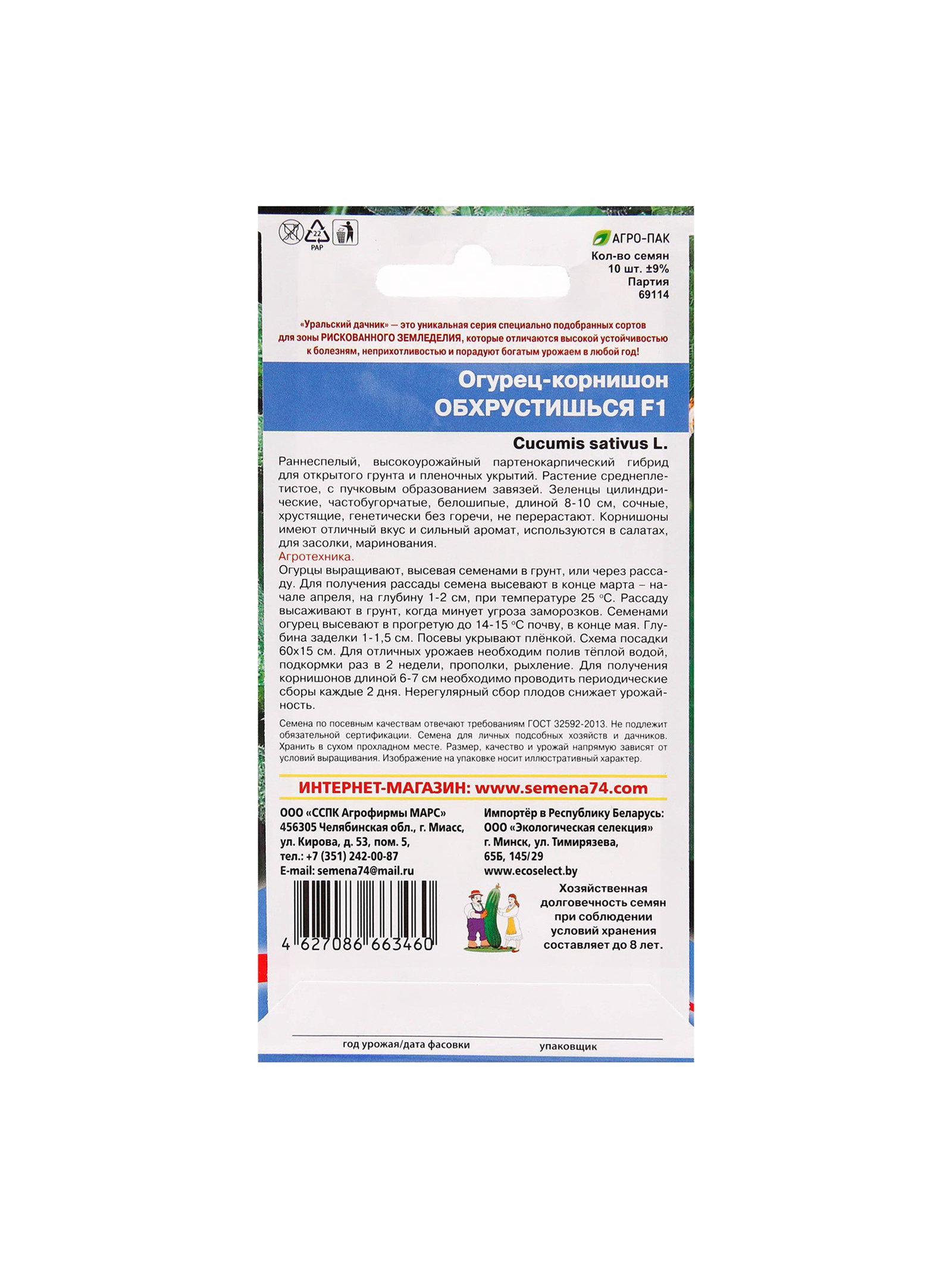 Семена огурец "Обхрустишься F1", раннеспелый, партенокарпический, 10 шт., Уральский Дачник, Россия