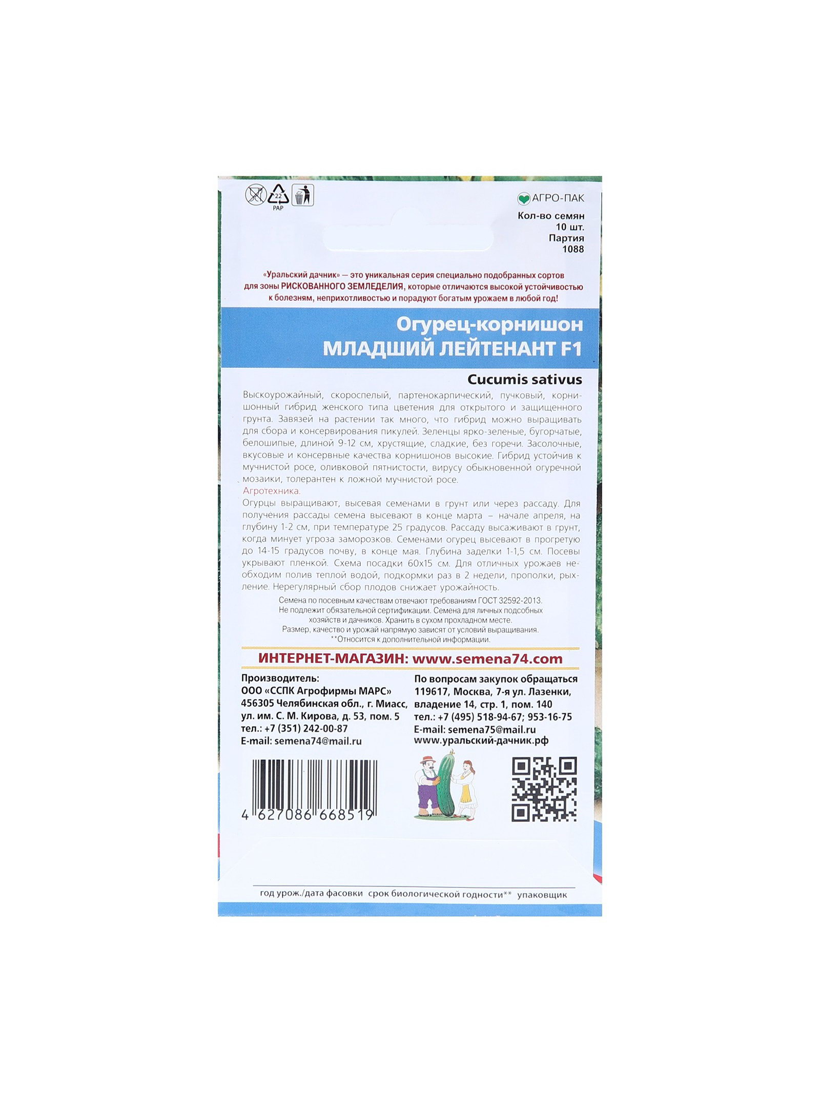 Семена огурец корнишон "Младший лейтенант F1", 10 шт., Уральский Дачник, Россия