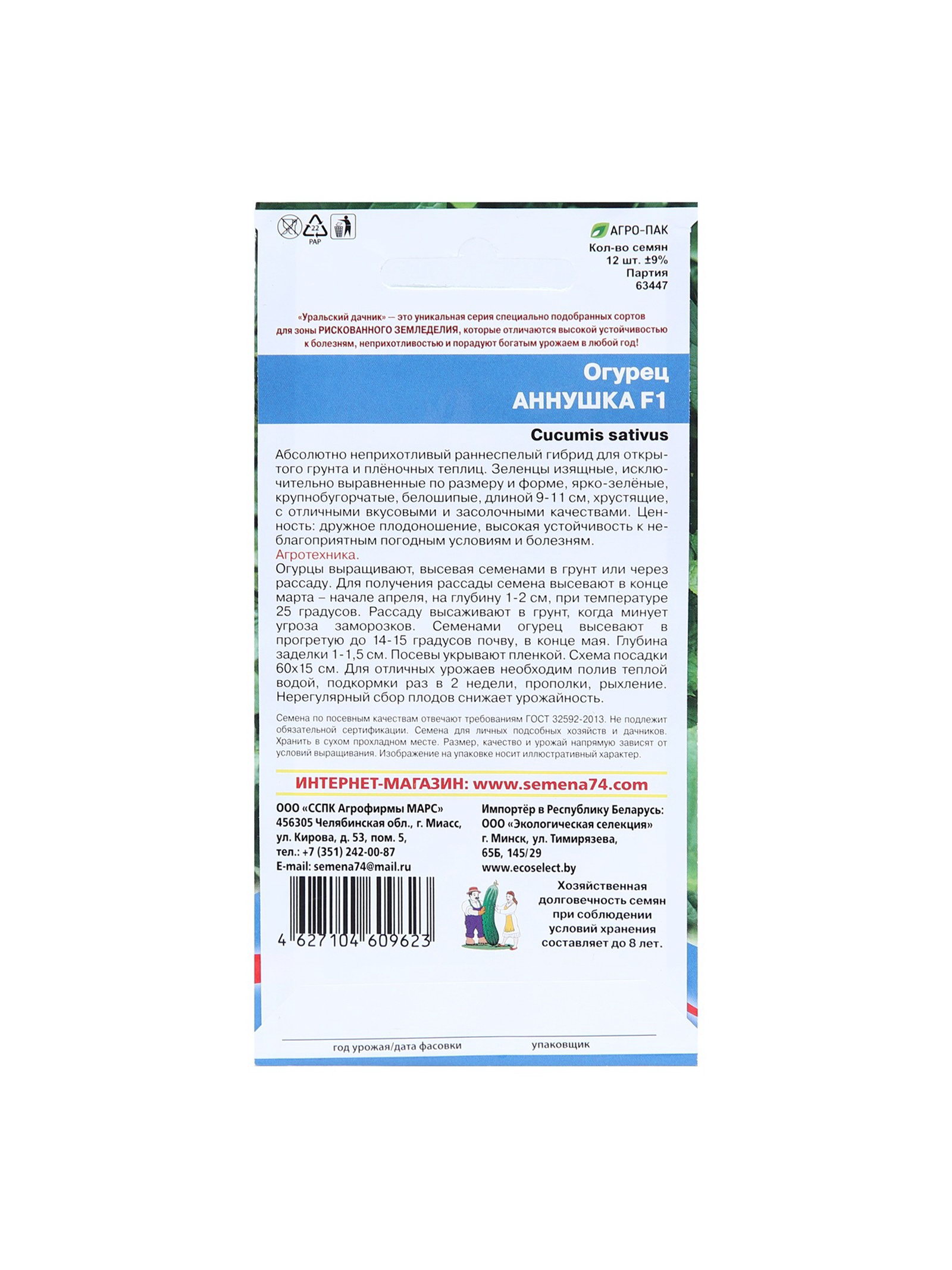 Семена Огурец Аннушка F1 12 шт, Уральский Дачник, Россия