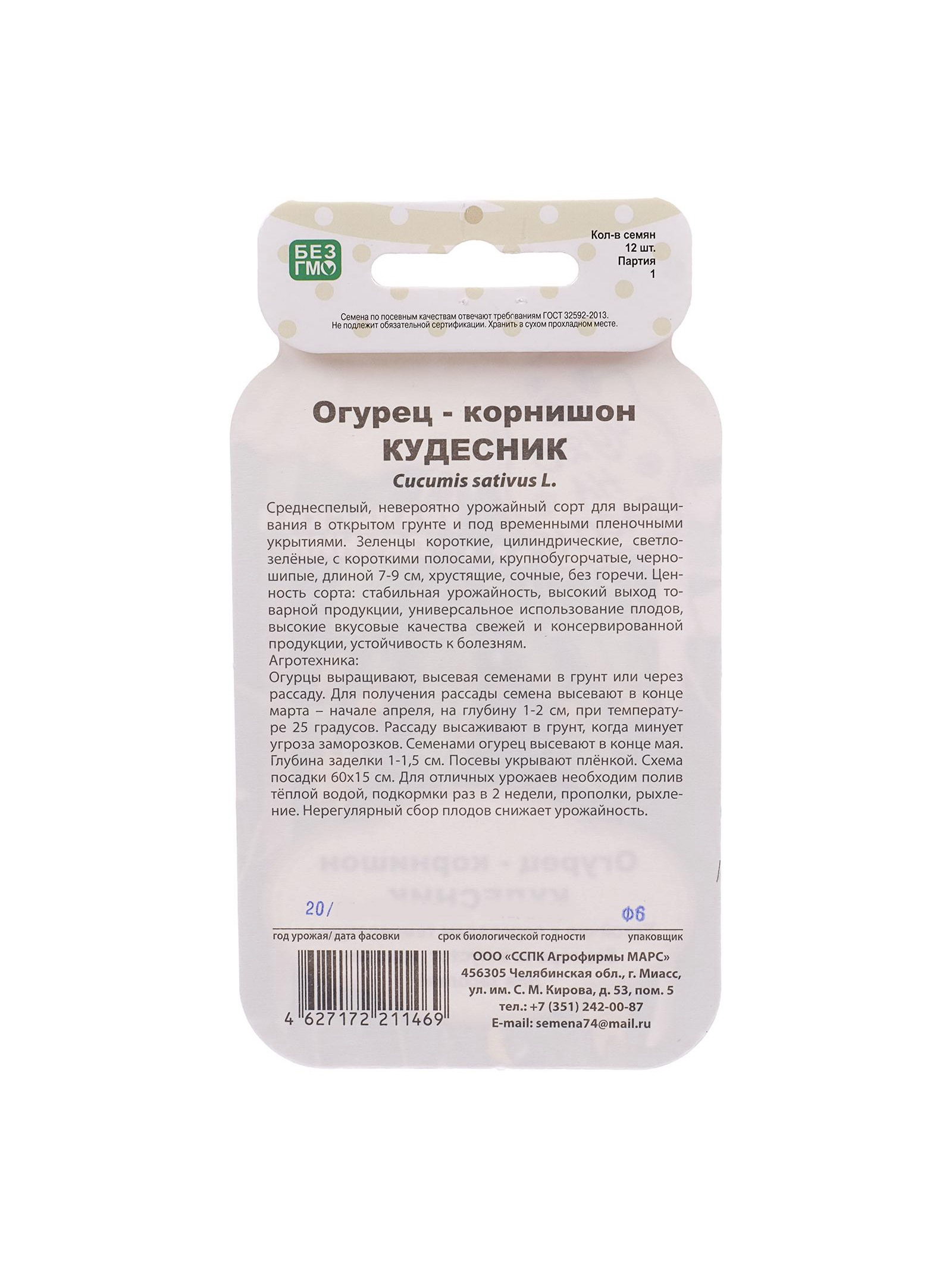 Семена Огурец "Кудесник", корнишон, серия Банка, 12 шт, Уральский Дачник, Россия