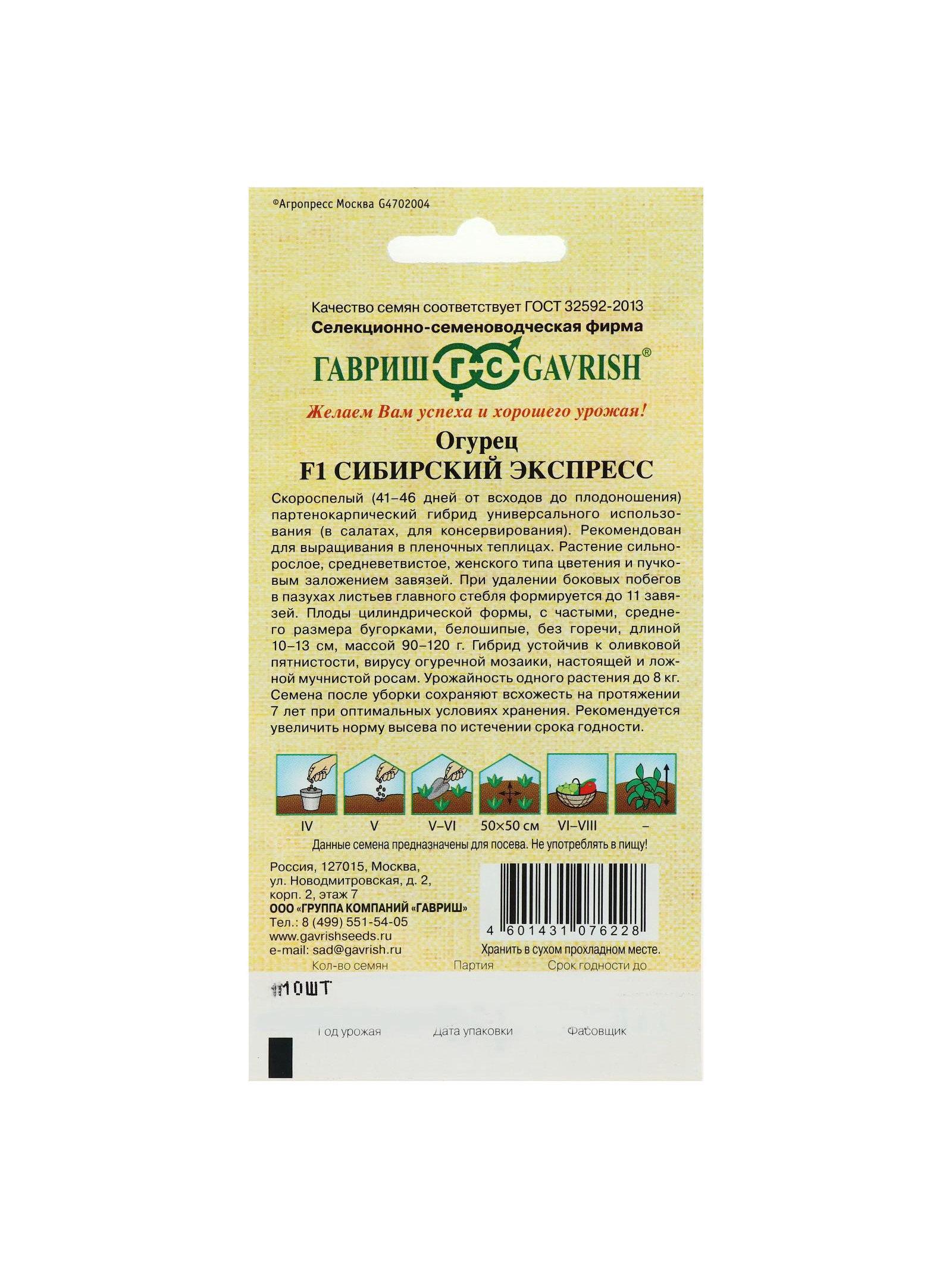 Семена Огурец "Сибирский экспресс", F1, 10 шт., Гавриш, Россия