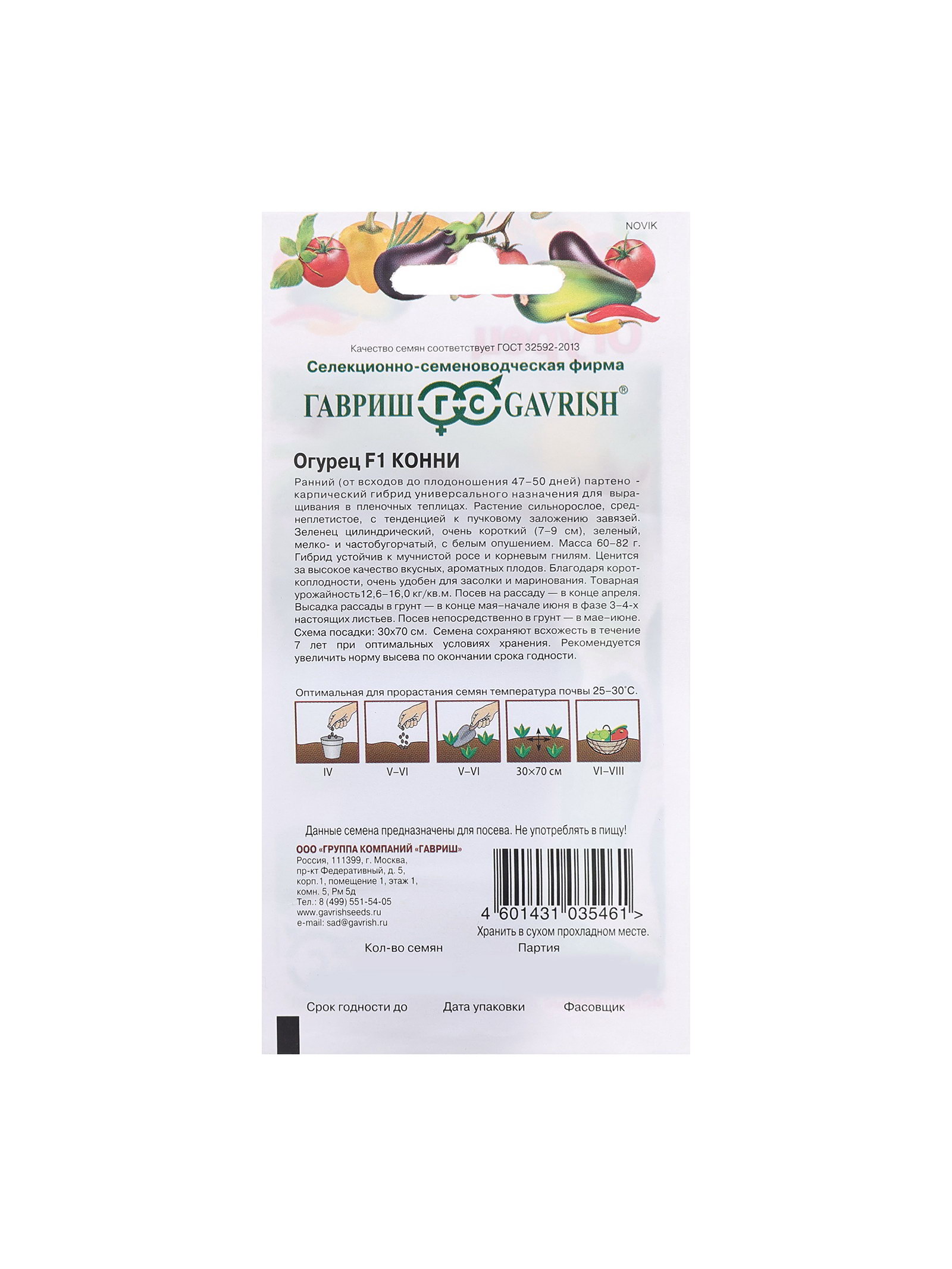 Семена Огурец "Конни", F1, 0.3 г, Гавриш, Россия