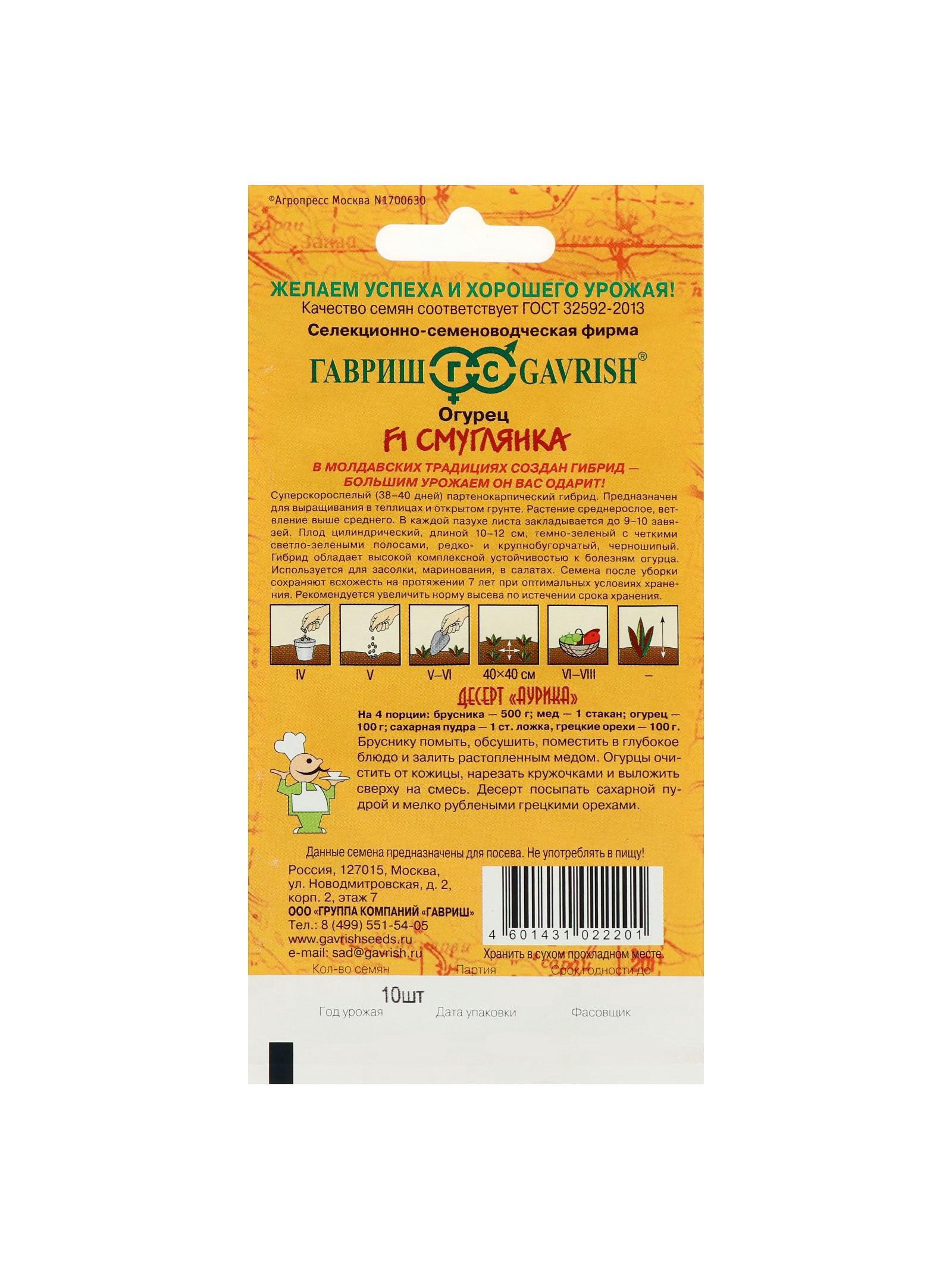 Семена Огурец "Смуглянка", F1, корнишон, серия География, 10 шт, Гавриш, Россия
