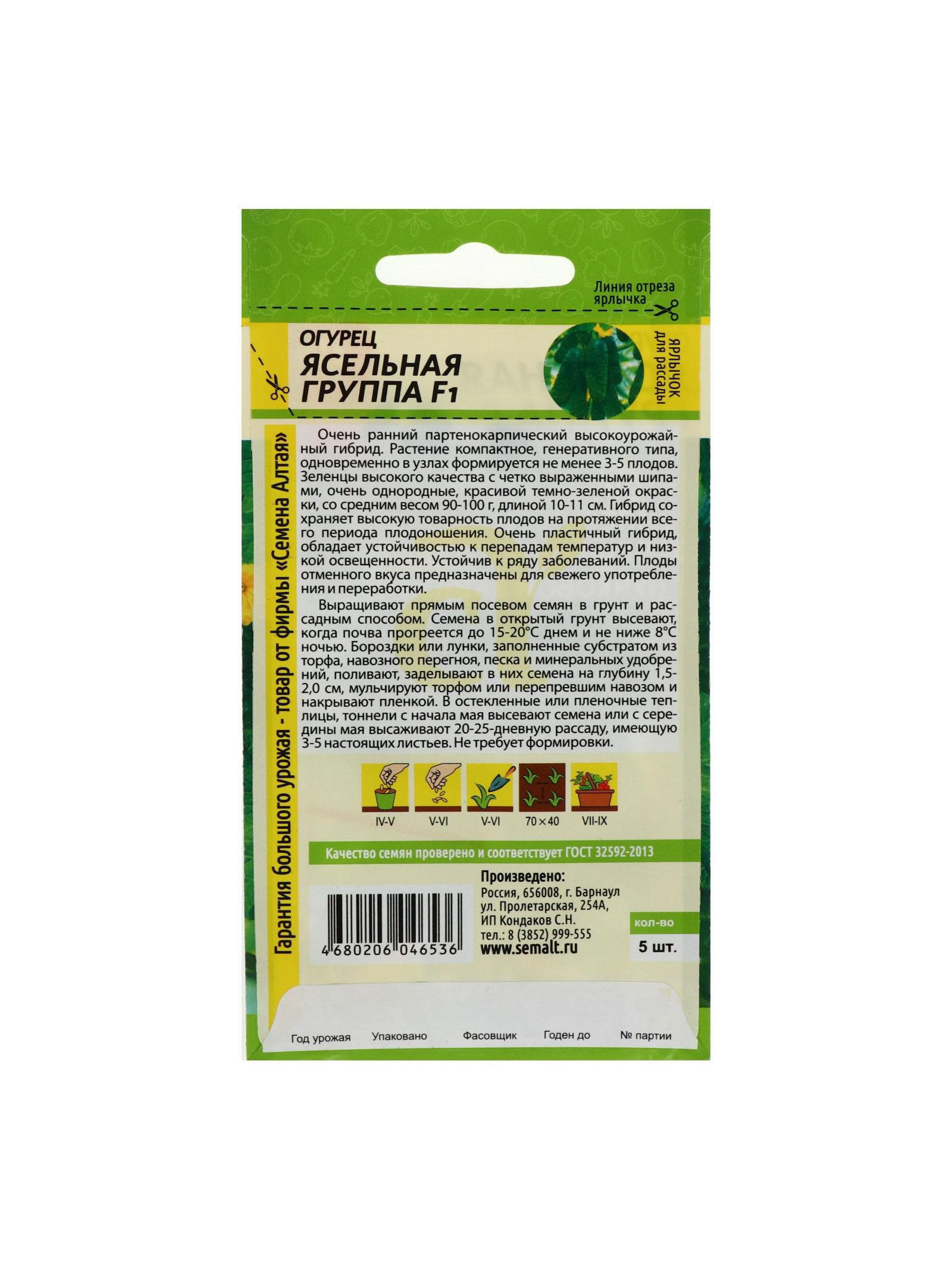 Семена Огурец "Ясельная Группа", F1, 5 шт, Семена Алтая, Россия