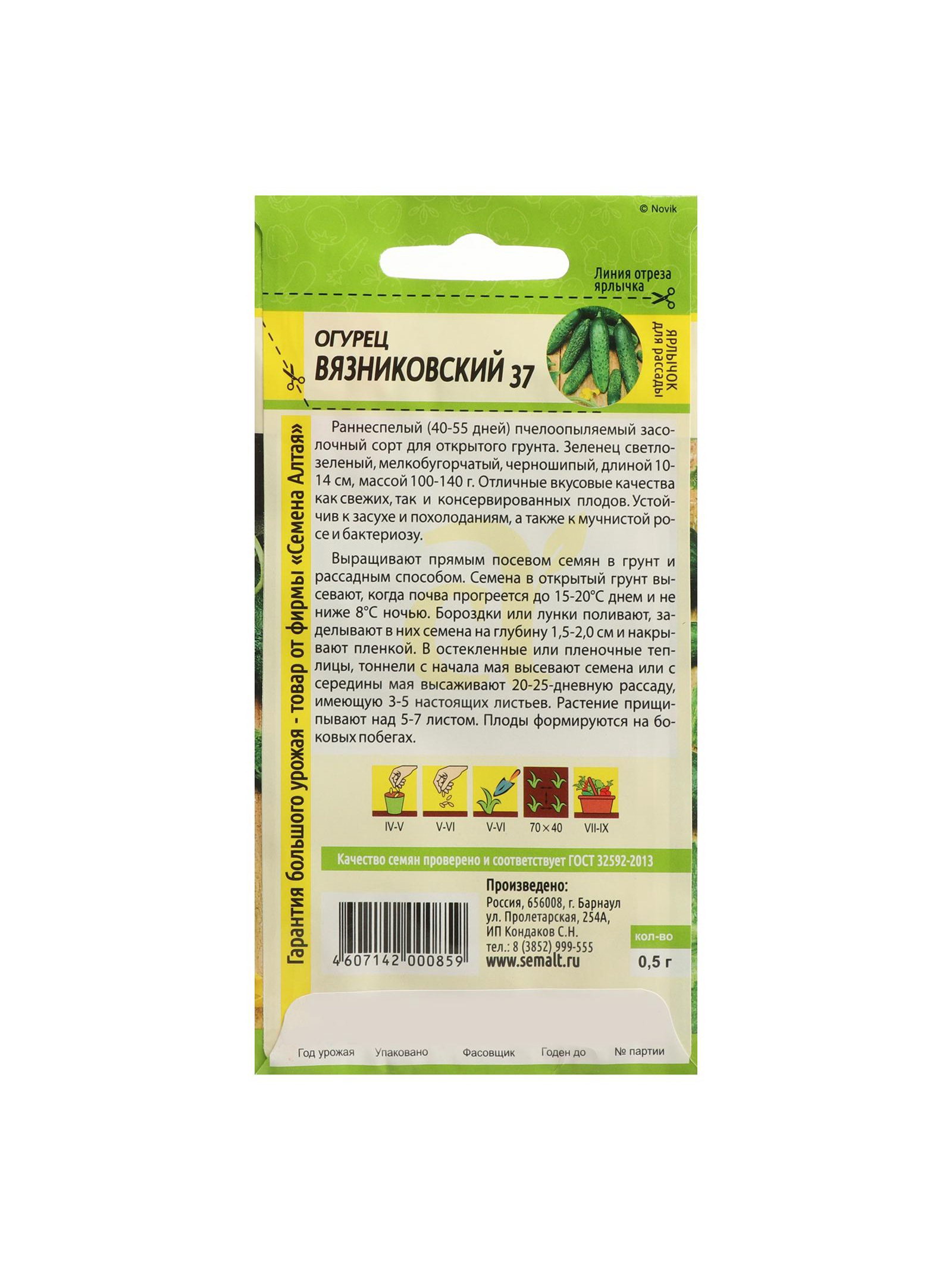 Семена Огурец "Вязниковский 37", Сем. Алт, ц/п, 0.5 г, Семена Алтая, Россия