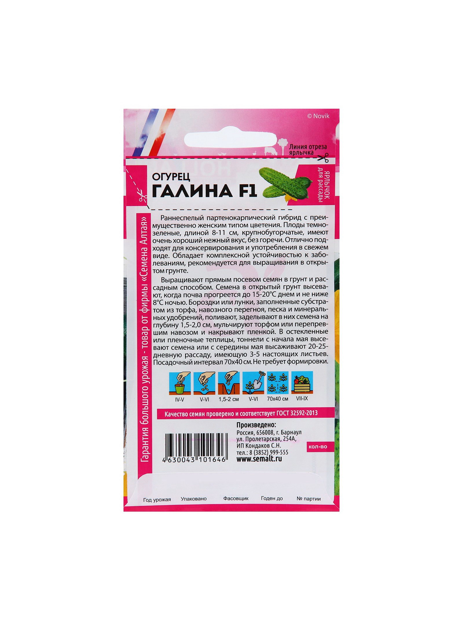 Семена огурца "Галина", F1, 5 шт., Семена Алтая, Россия