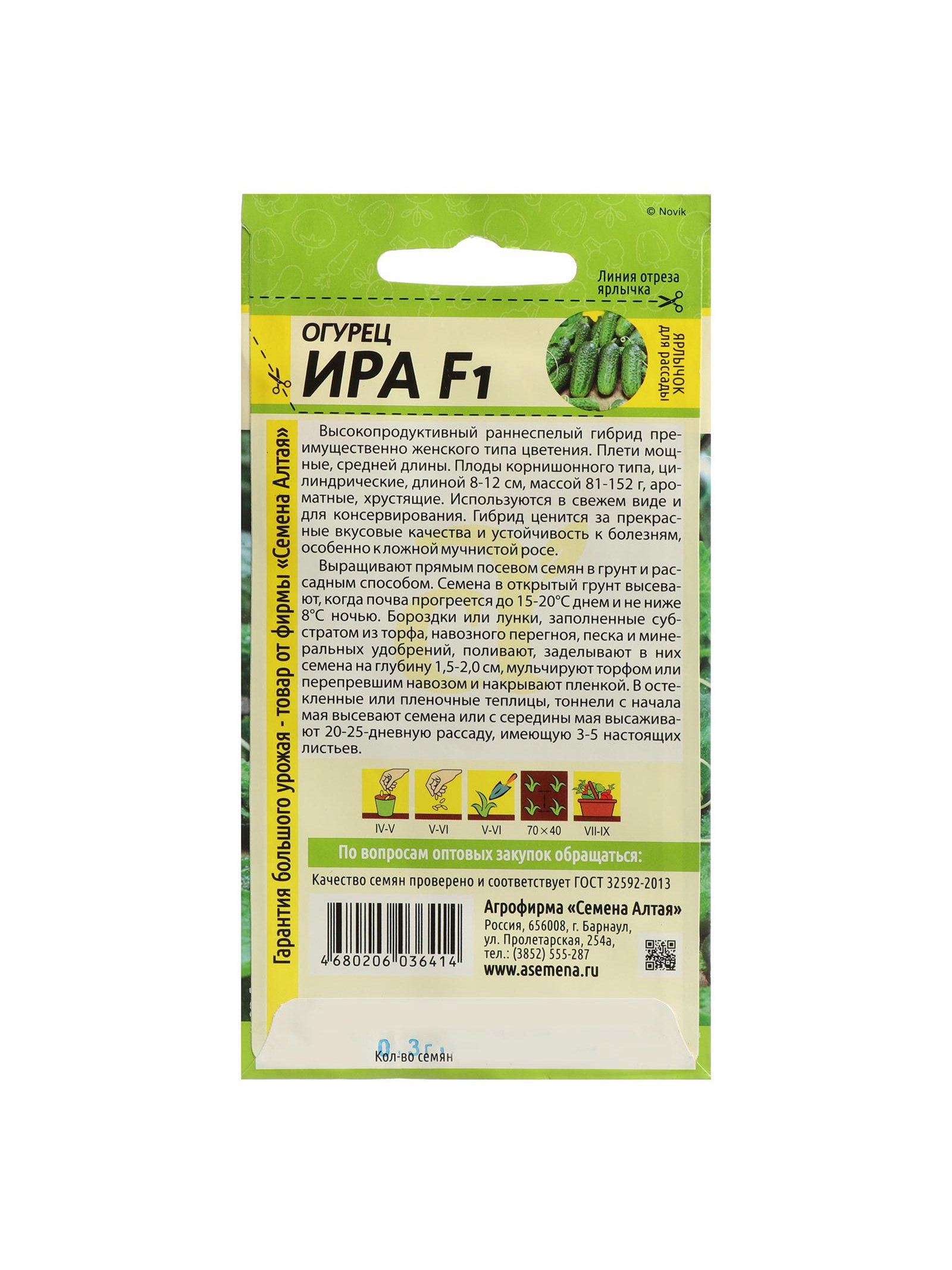 Семена Огурец "Ира", F1, Сем. Алт, ц/п, 0.3 г, Семена Алтая, Россия