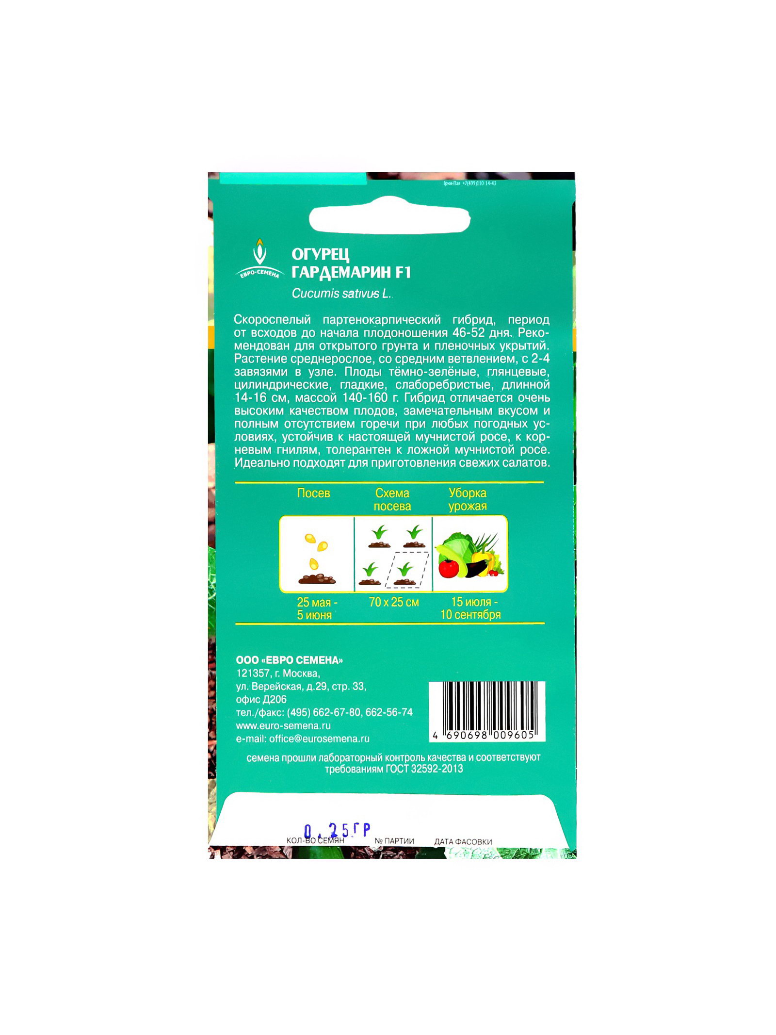 Семена Огурец Гардемарин F1 цв/п 0.25 г, скороспелый, партенокарпический, гладкий, салатный, Евро-семена, Россия