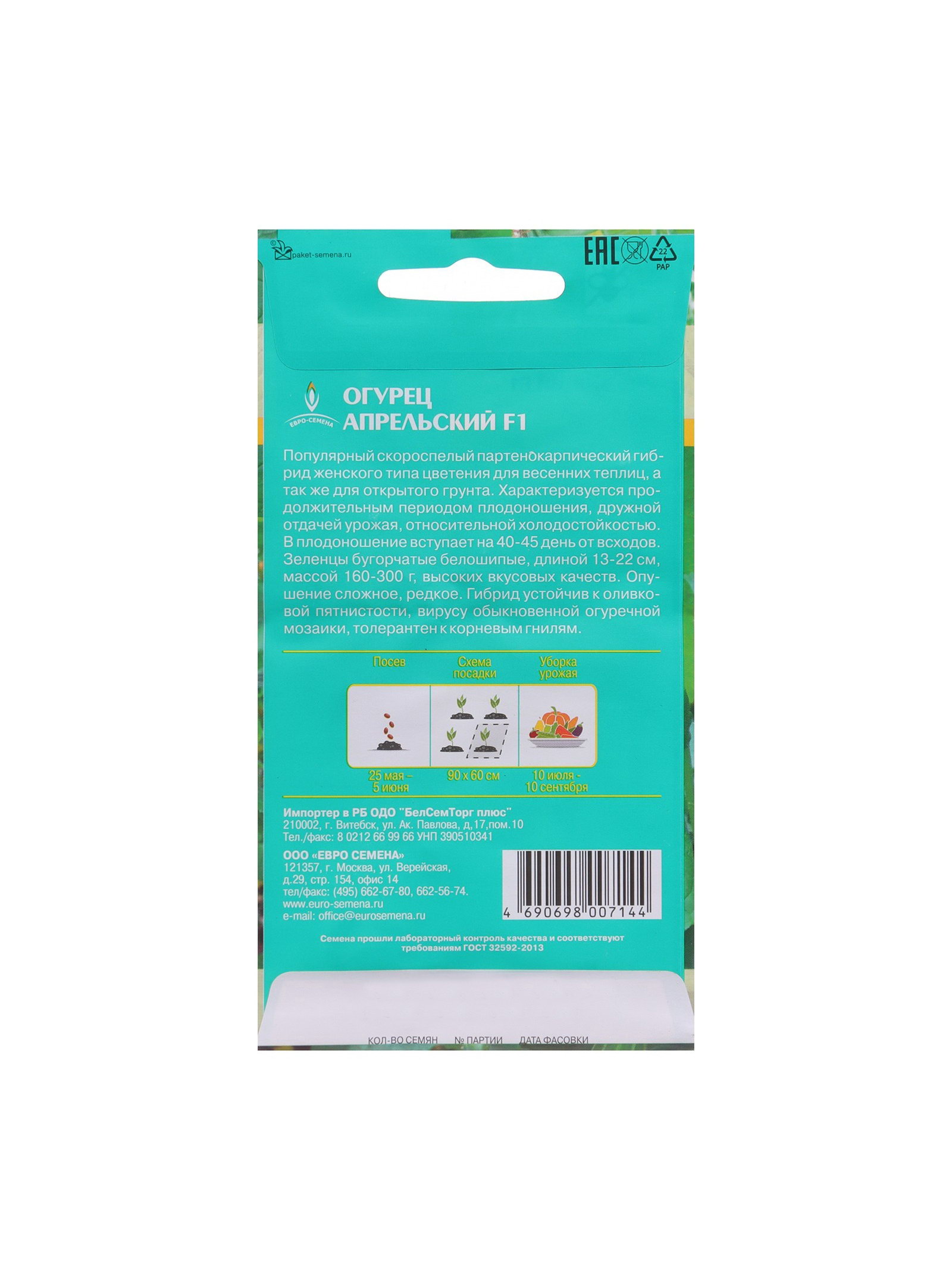 Семена Огурец Апрельский F1 цв/п 0.25 гр, партенокарпический, Евро-семена, Россия