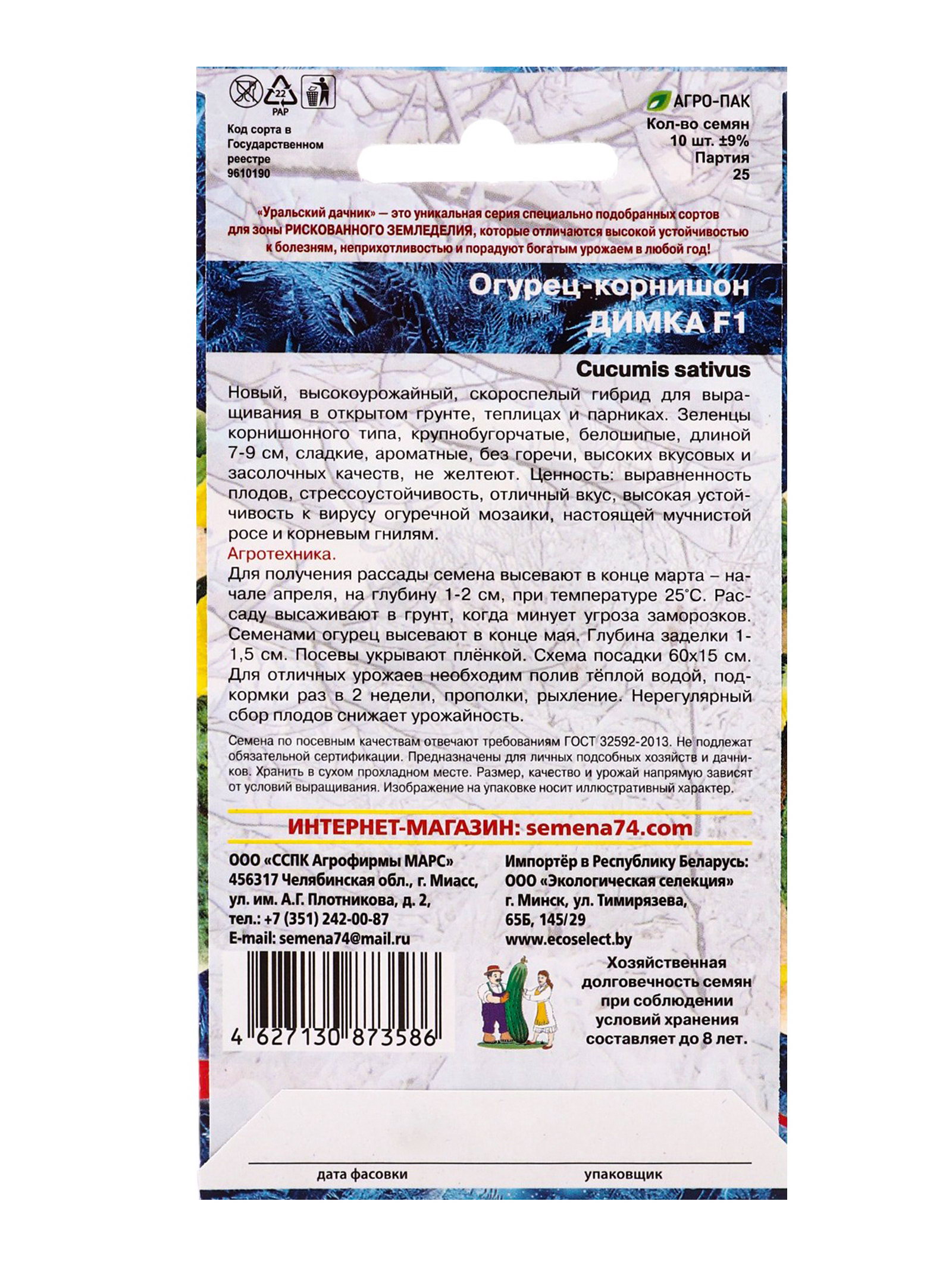 Семена огурца "Димка", F1, 10 шт., Уральский Дачник, Россия