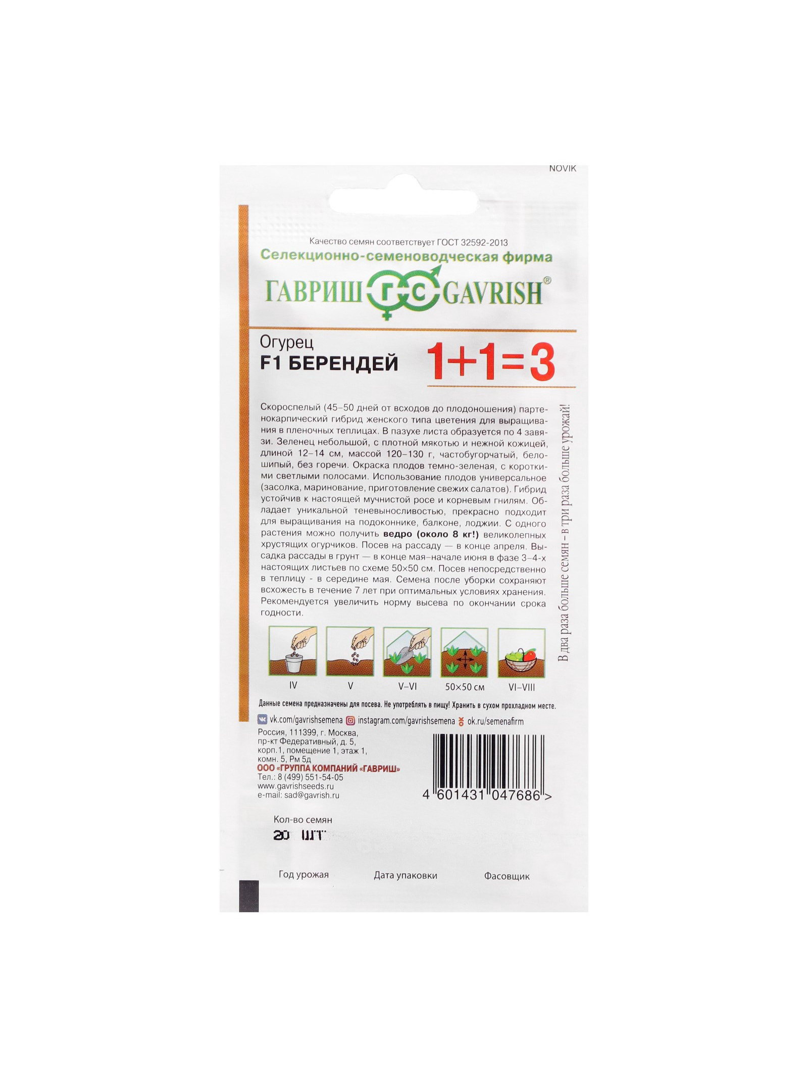 Семена Огурец "Берендей", F1, 20 шт., Гавриш, Россия
