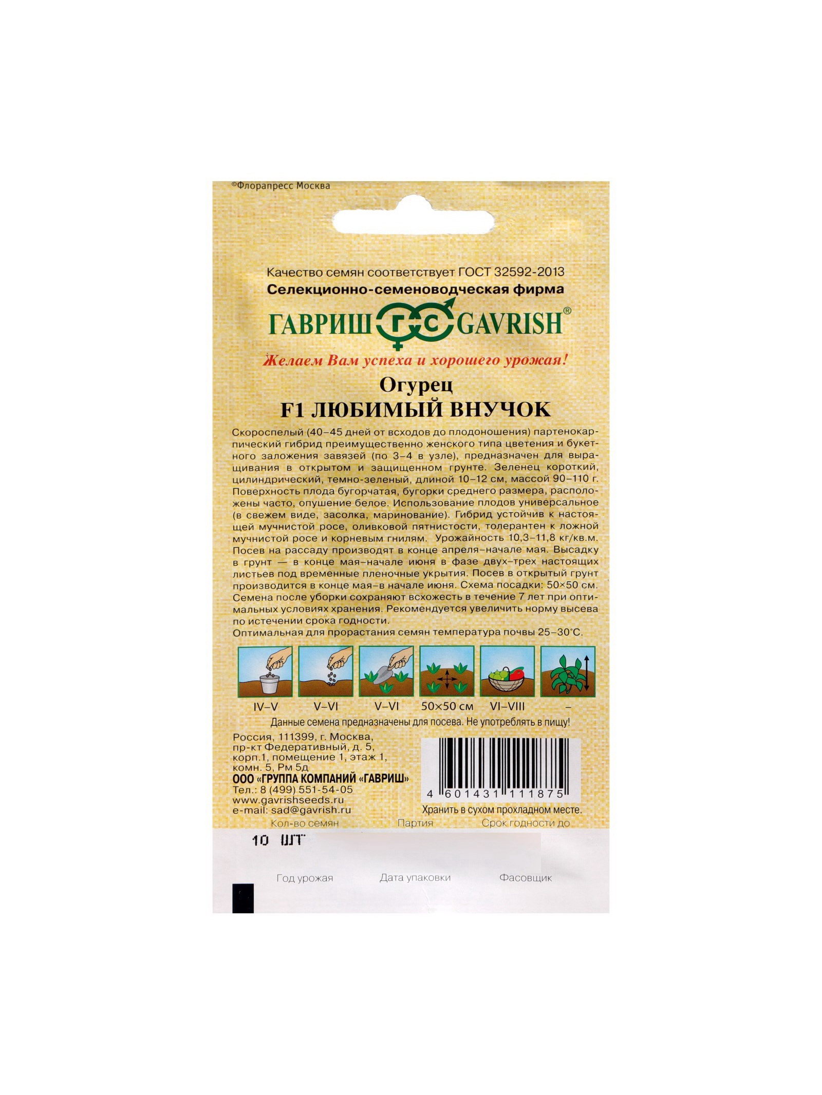 Семена Огурец "Любимый внучок F1", 10 шт, Гавриш, Россия