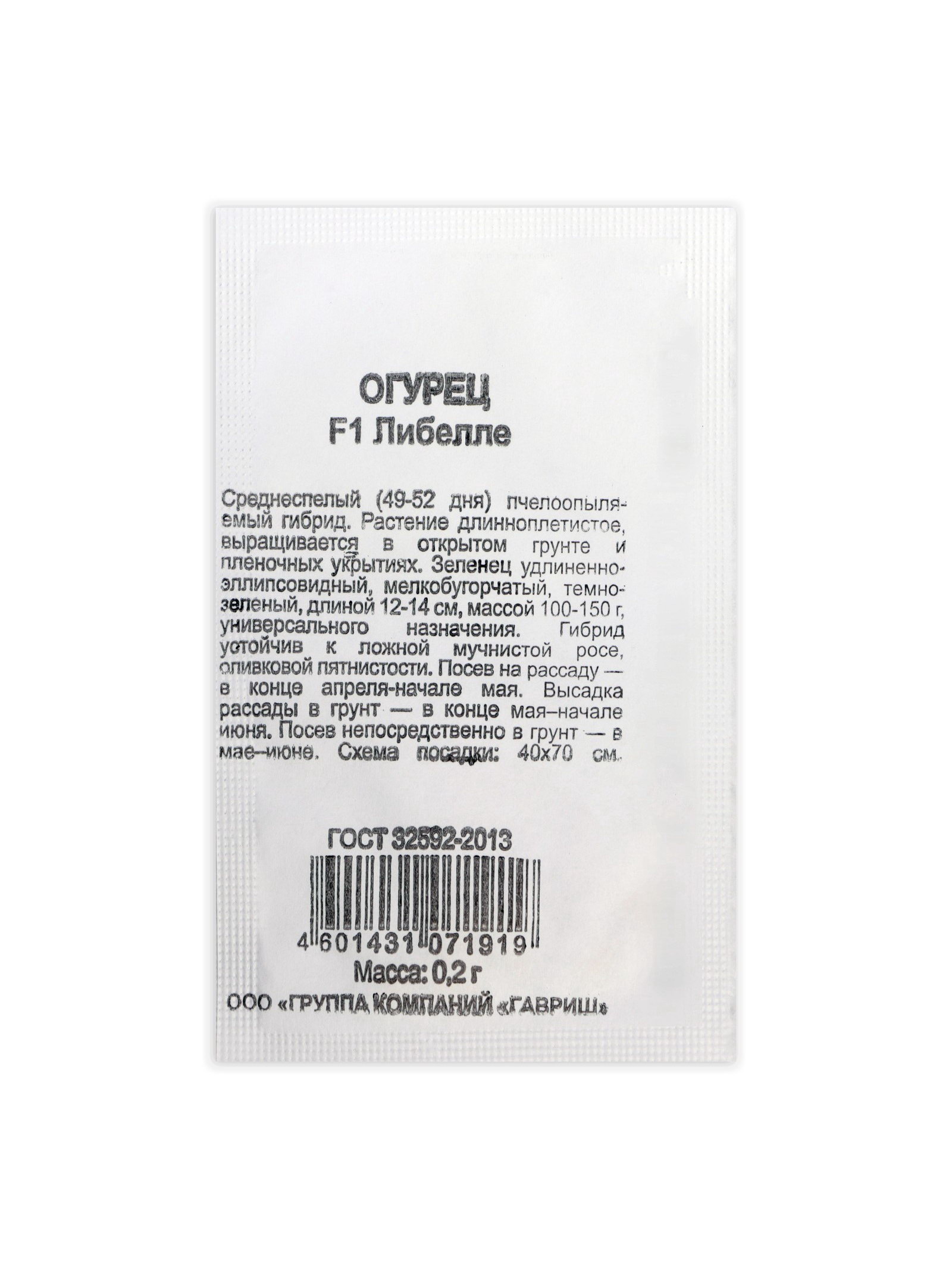 Семена Огурец "Либелле F1", б/п, 0.2 г, Гавриш, Россия
