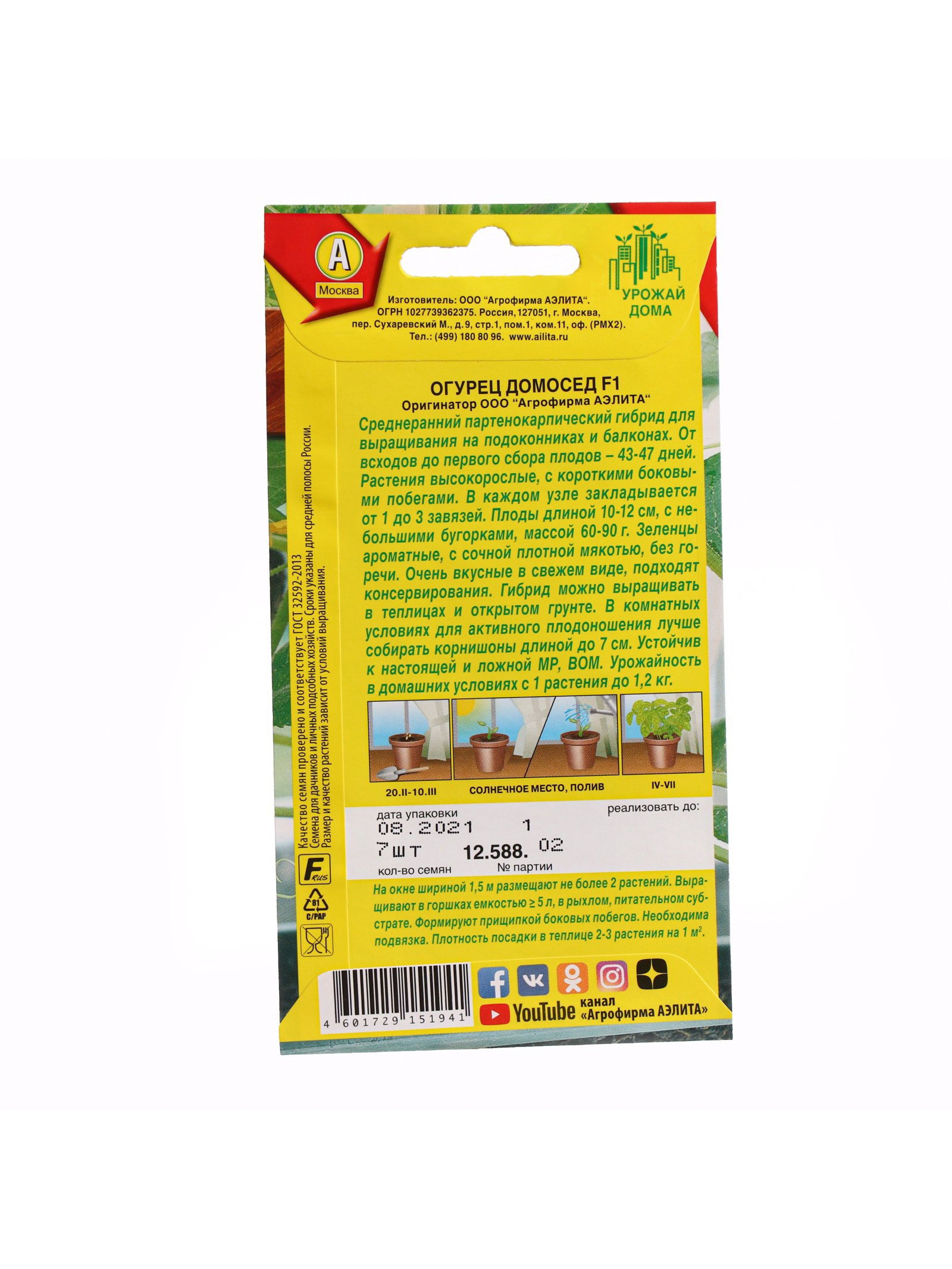 Семена огурца "Домосед", F1, 7 шт., Агрофирма АЭЛИТА, Россия