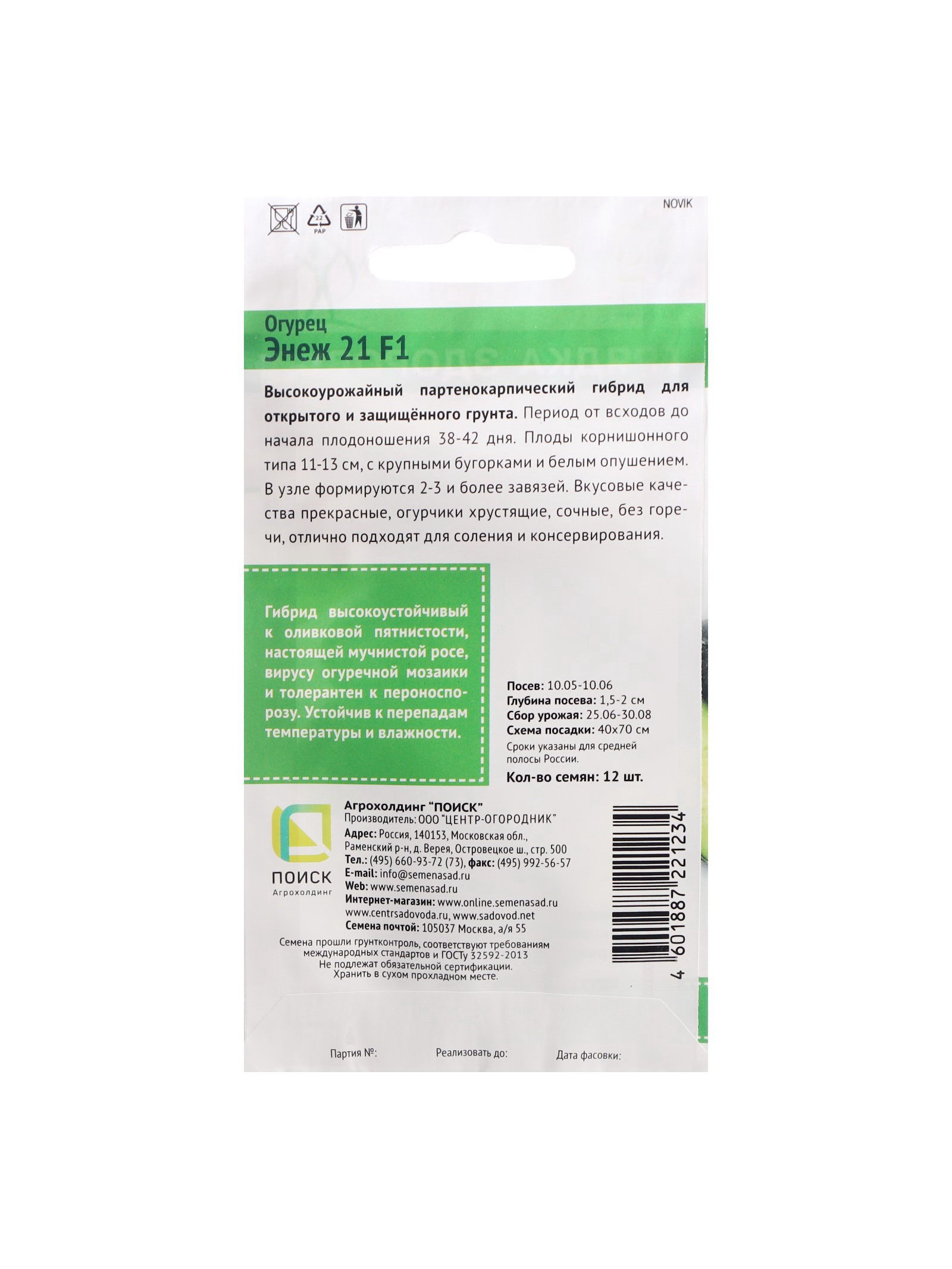 Семена Огурец "Энеж 21", F1, 12 шт, ПОИСК, Китай
