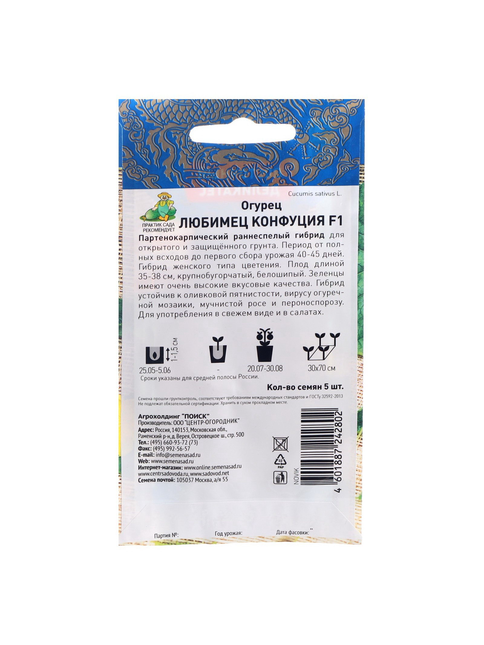 Семена Огурец "Любимец Конфуция", F1, 5 шт, ПОИСК, Китай