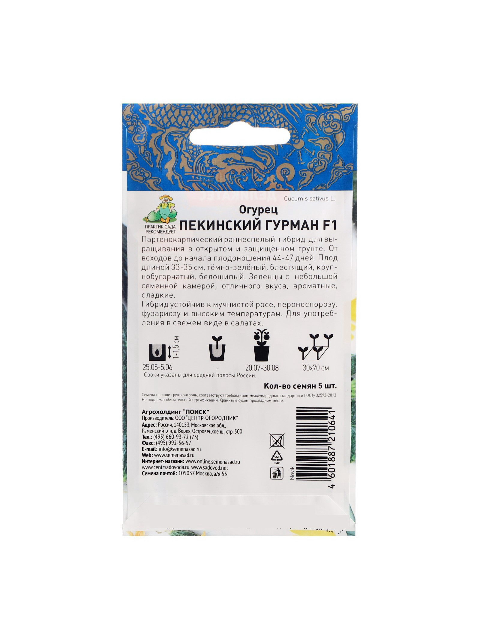 Семена Огурец "Пекинский гурман", F1, 5 шт, ПОИСК, Китай