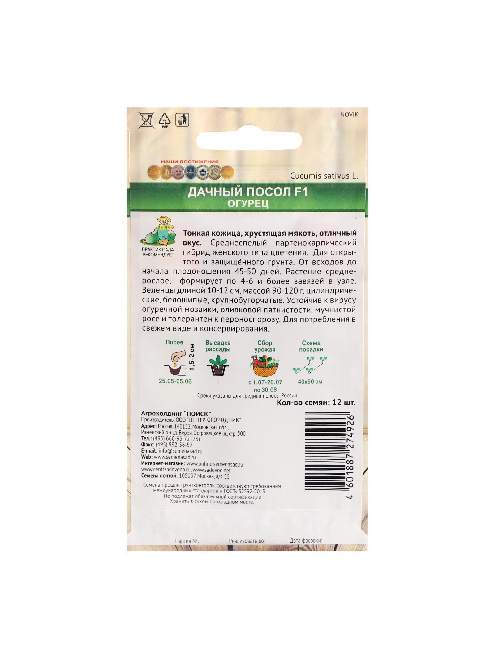 Семена огурца "Дачный Посол", F1, 12 шт., ПОИСК, Италия