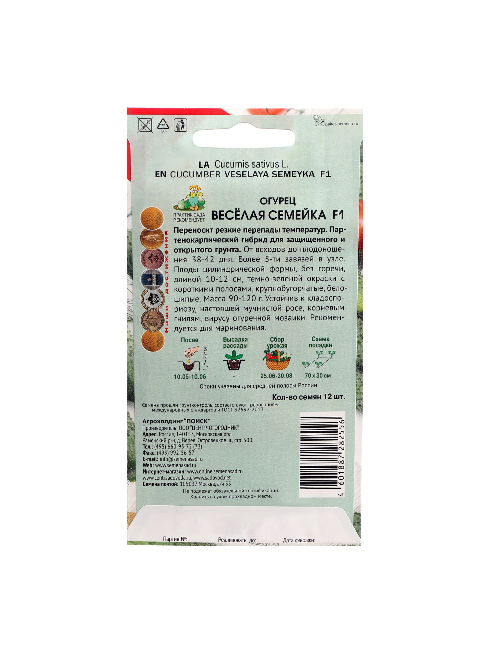 Семена огурца "Веселая семейка", F1, 12 шт., ПОИСК, Италия