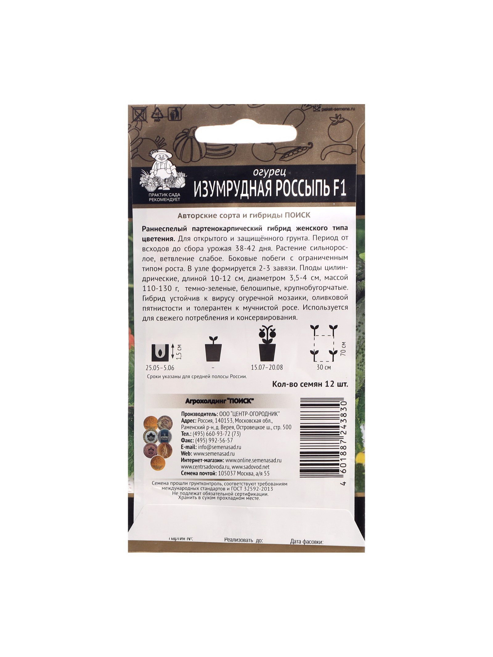 Семена Огурец "Изумрудная россыпь", F1, 12 шт, ПОИСК, Италия
