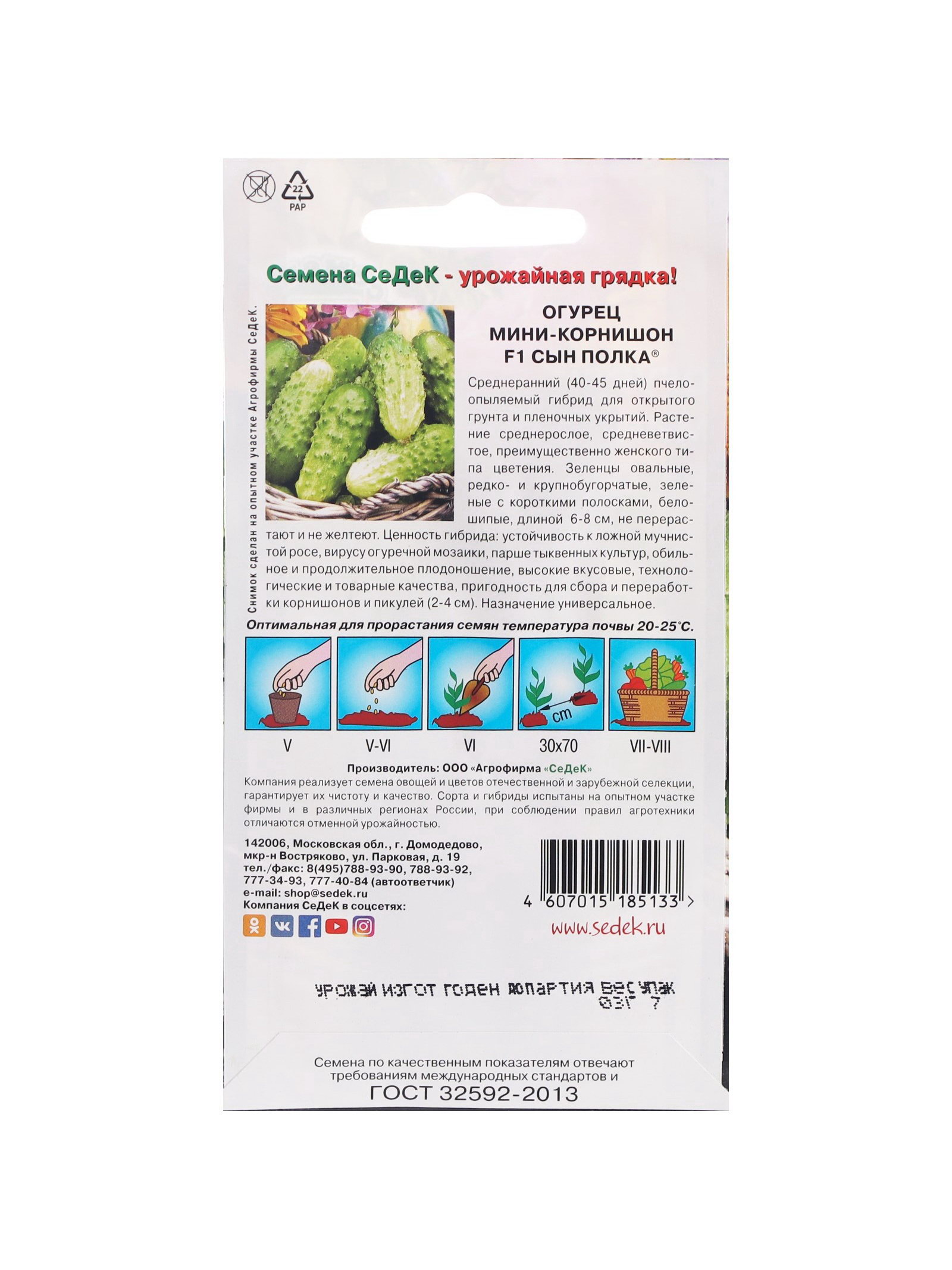 Семена Огурец "Сын полка F1", 0.3 г, СеДеК, Россия