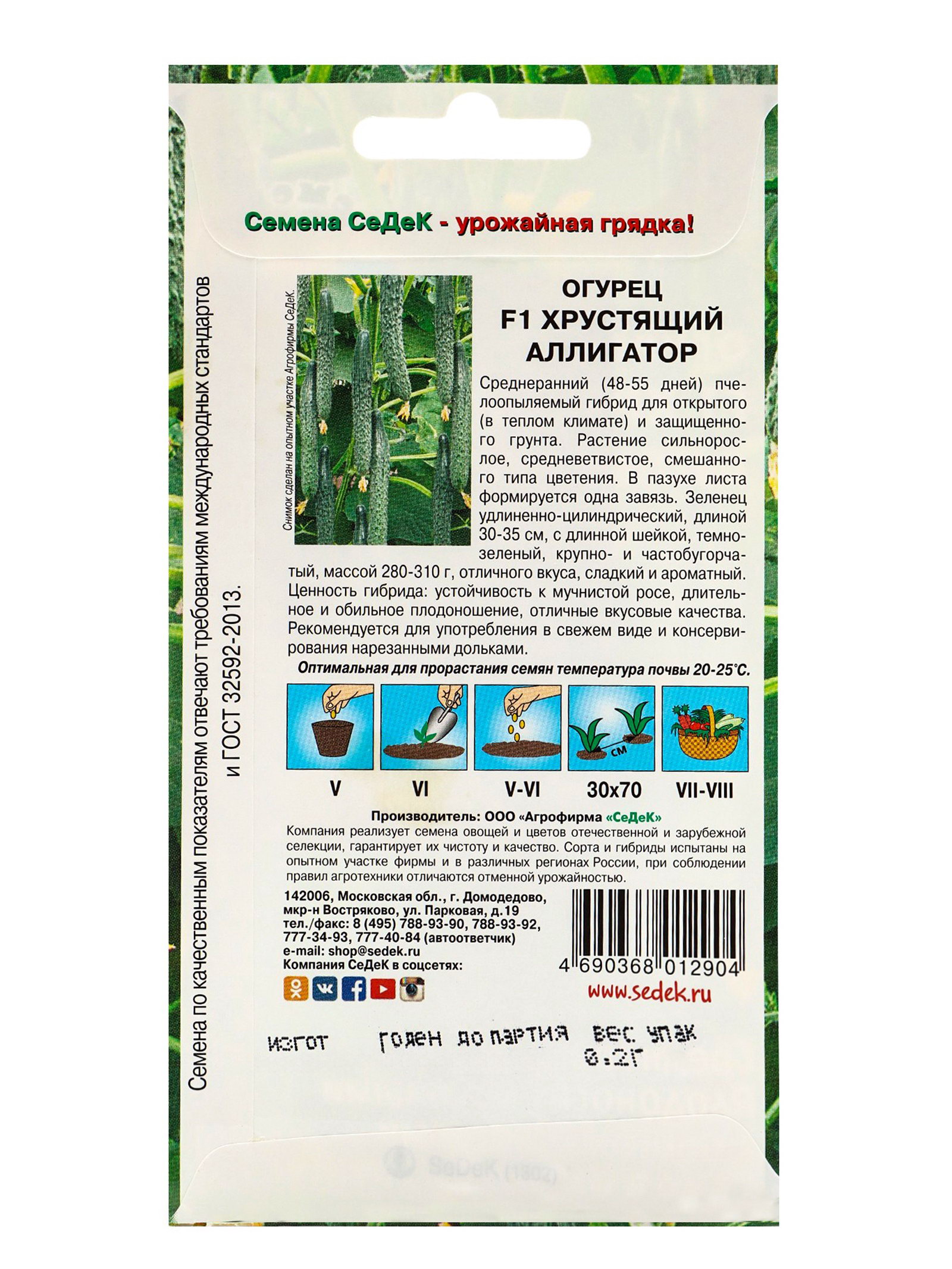 Семена Огурец "Хрустящий аллигатор "F1 0.2 г, СеДеК, Россия