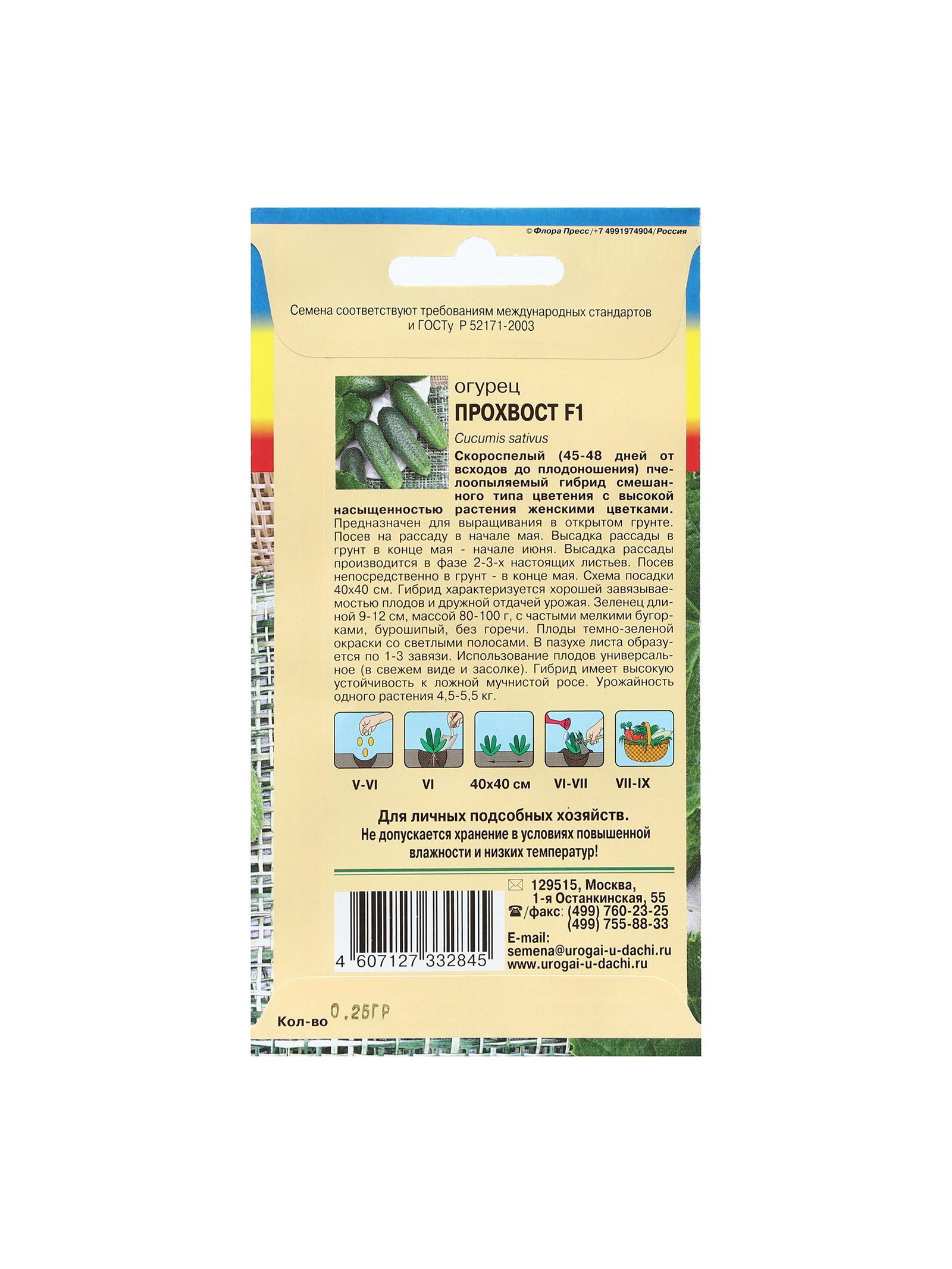 Семена Огурец "ПРОХВОСТ F1", 0.25 г, УРОЖАЙ УДАЧИ, Россия