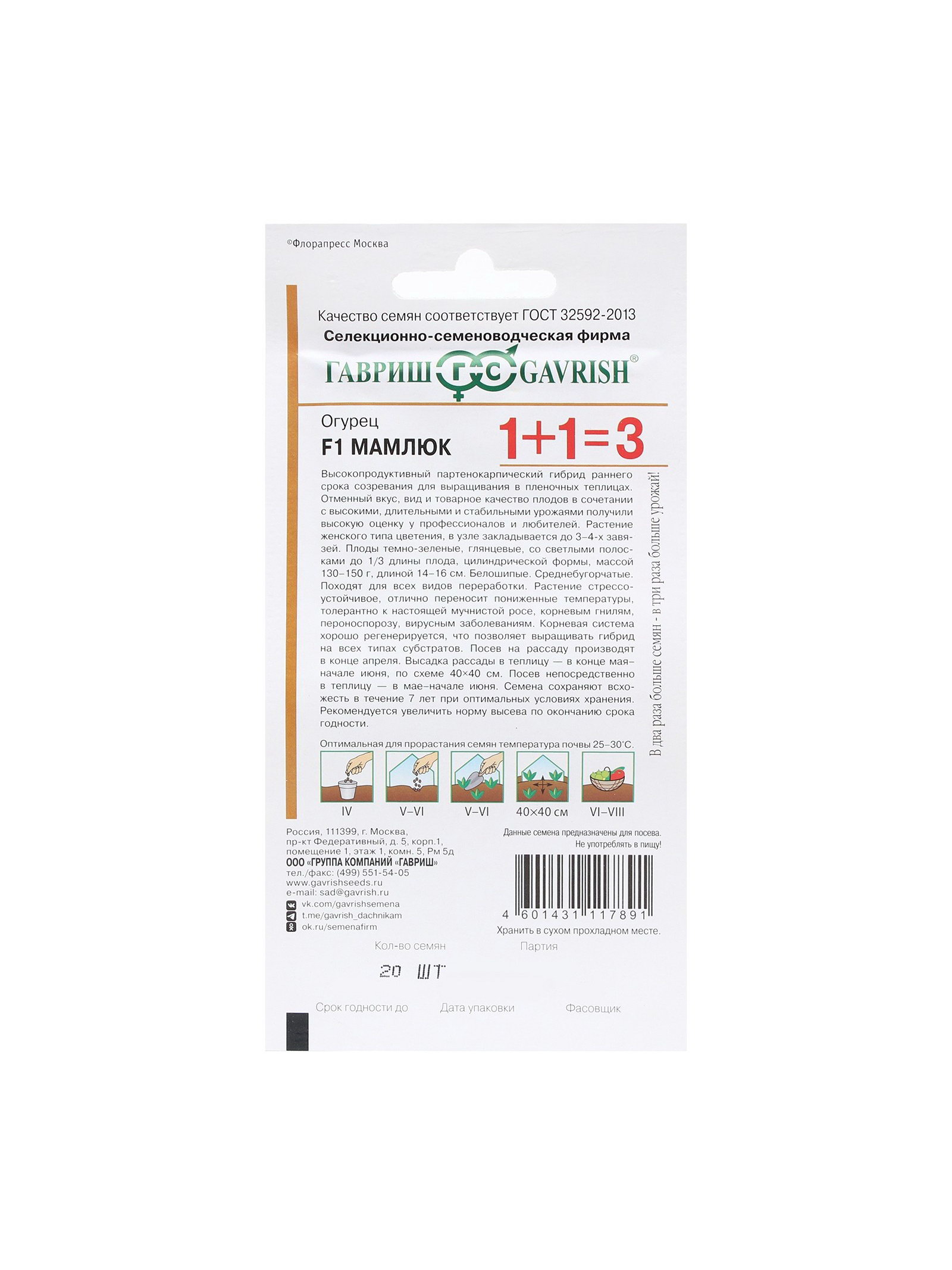 Семена Огурец "Мамлюк", F1, 20 шт., "1+1-Гавриш", Гавриш, Россия